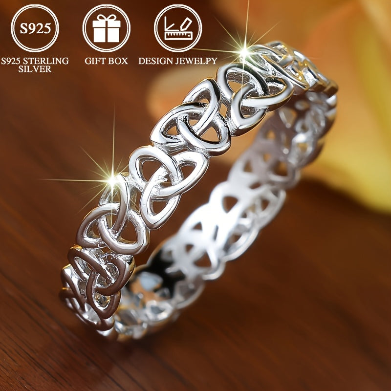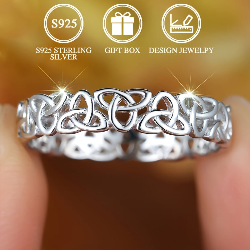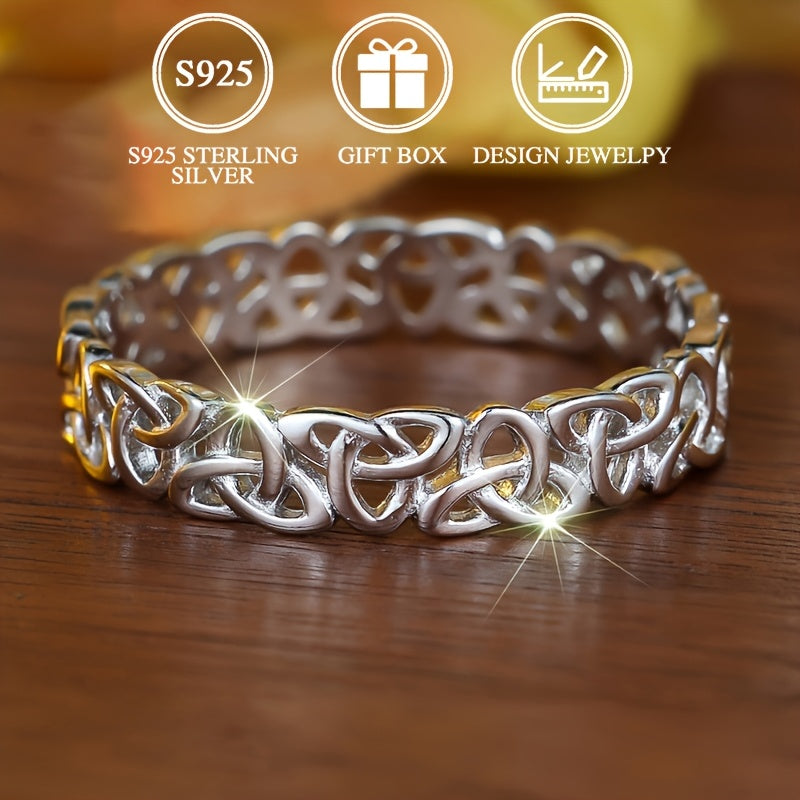 This classic Celtic knot ring is made of S925 sterling silver, perfect for special occasions like parties or banquets. It weighs 1.8g and adds a touch of elegance to any outfit.