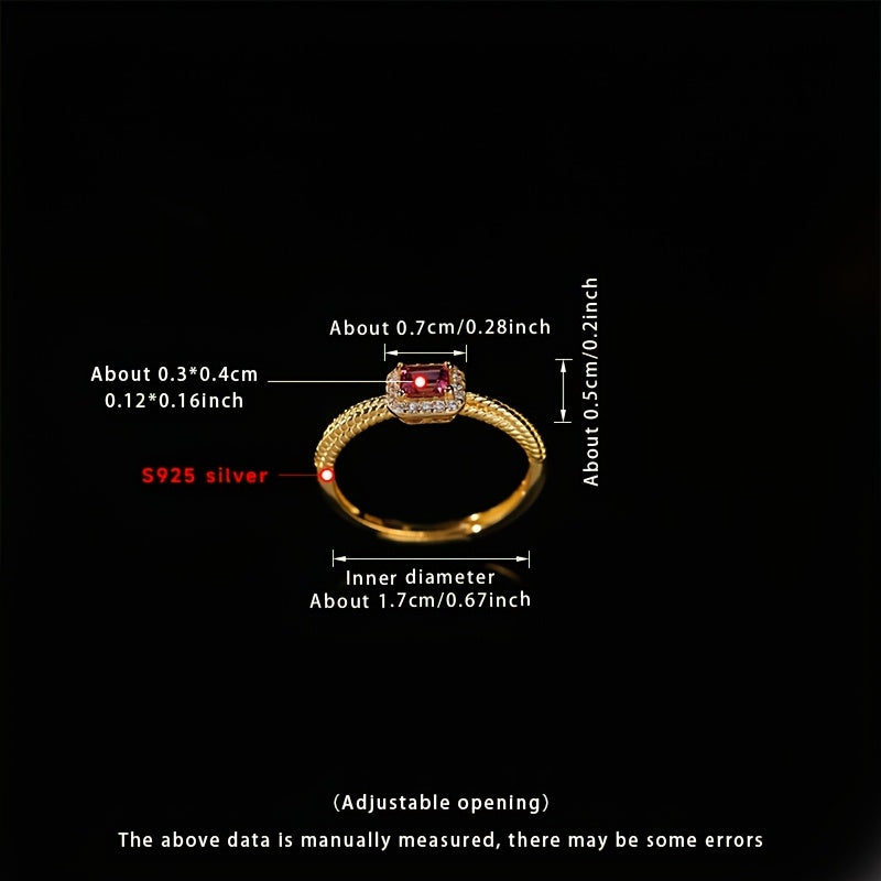 S925 Silver Garnet Ring for Women Open Adjustable Red Gemstone Gift