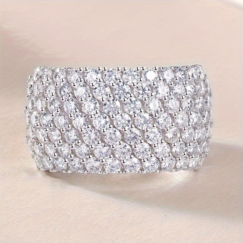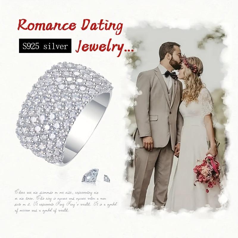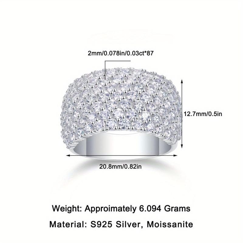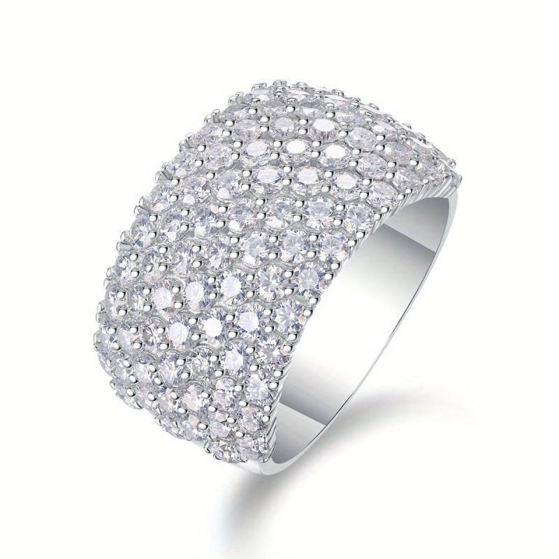 S925 Silver Pave Moissanite Ring, Wide Band, Opulent Accessory