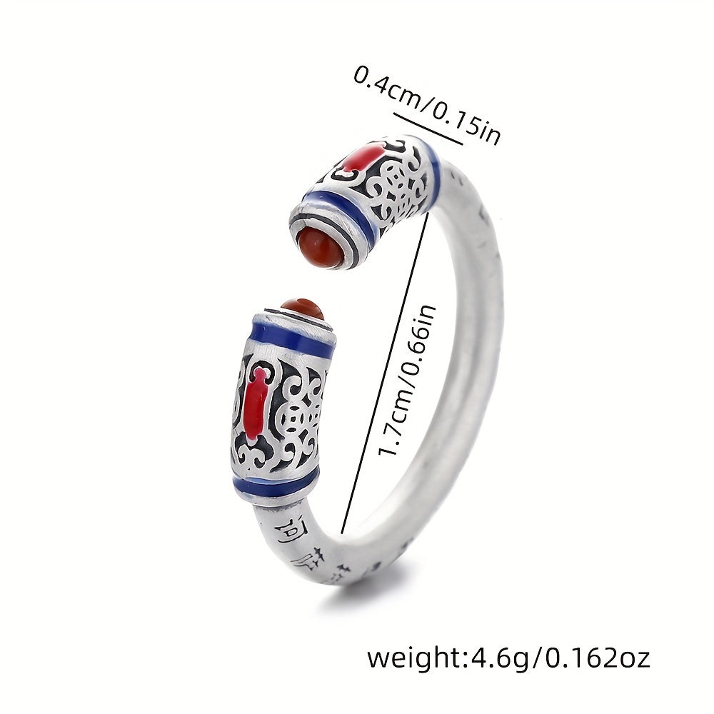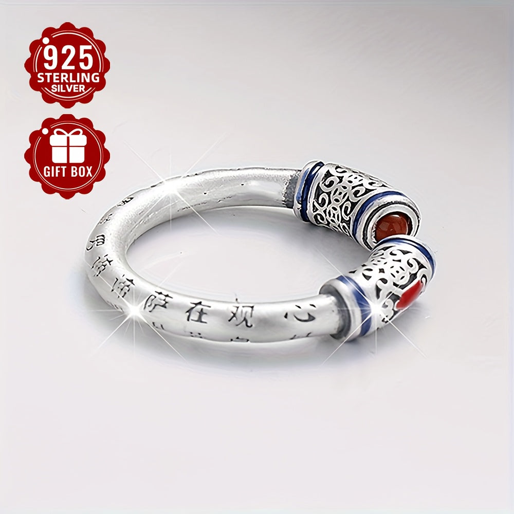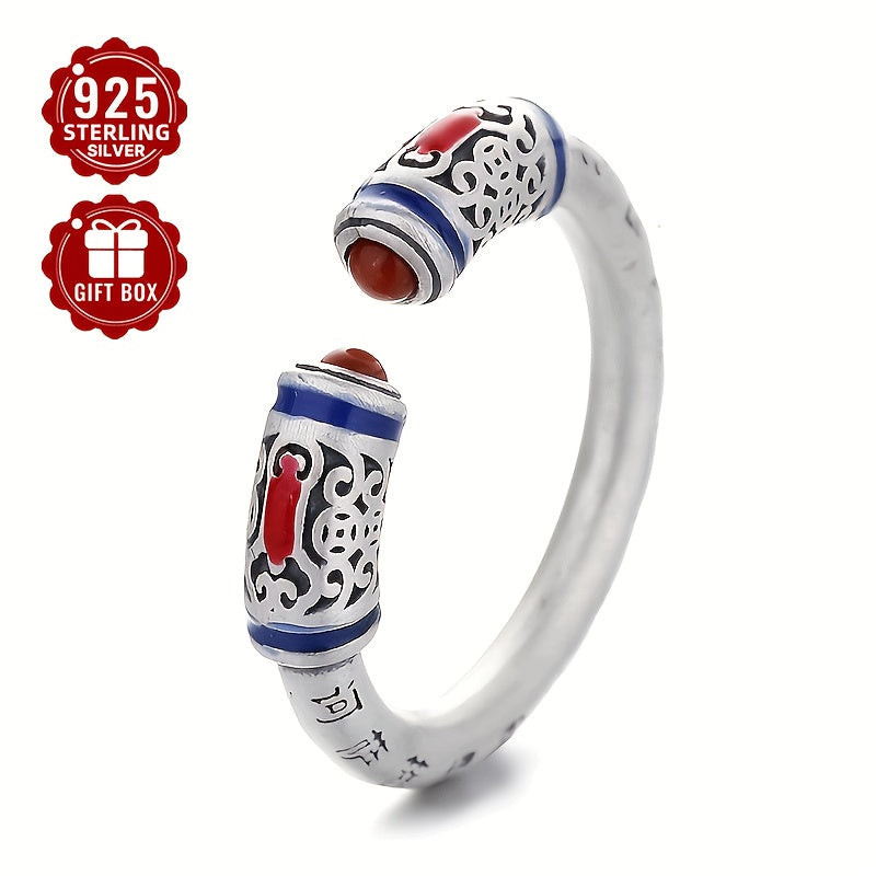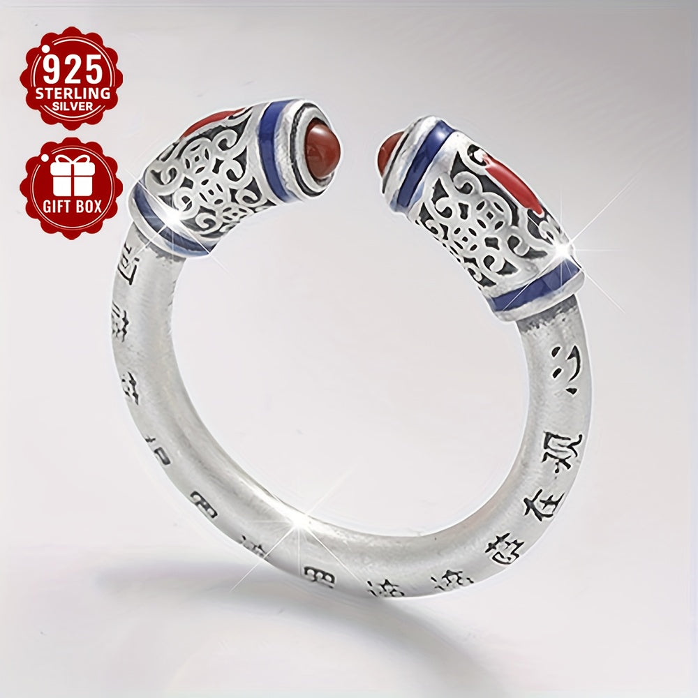 This s925 pure silver ring features a red agate heart sutra carving with a matte finish. It is suitable for party gatherings and has a neutral design that appeals to both men and women.