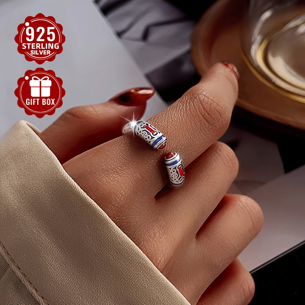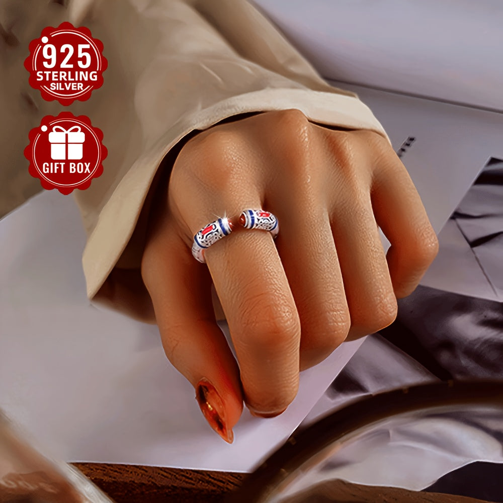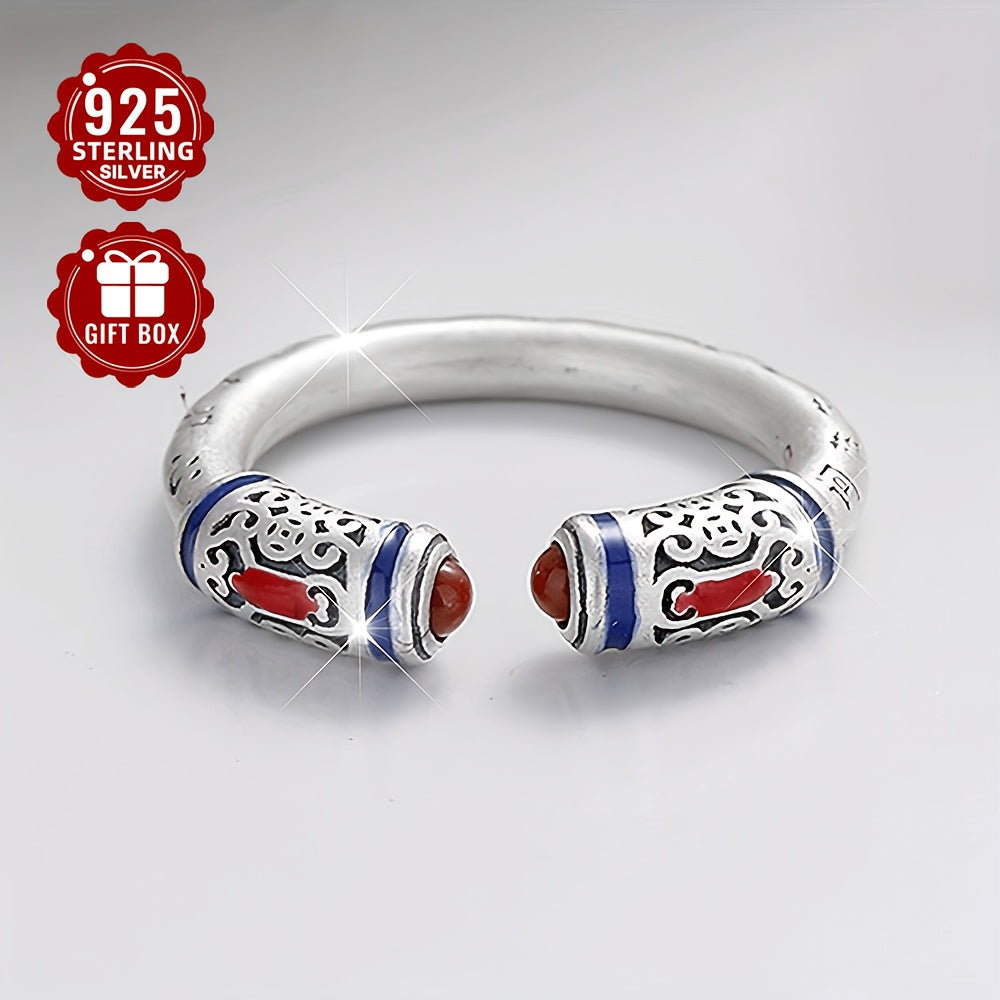 This s925 pure silver ring features a red agate heart sutra carving with a matte finish. It is suitable for party gatherings and has a neutral design that appeals to both men and women.