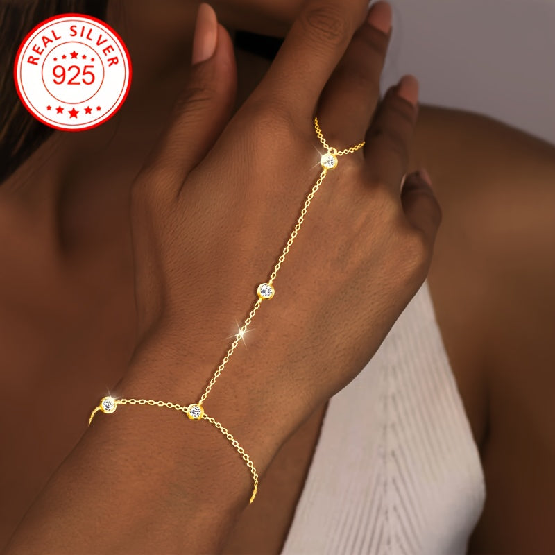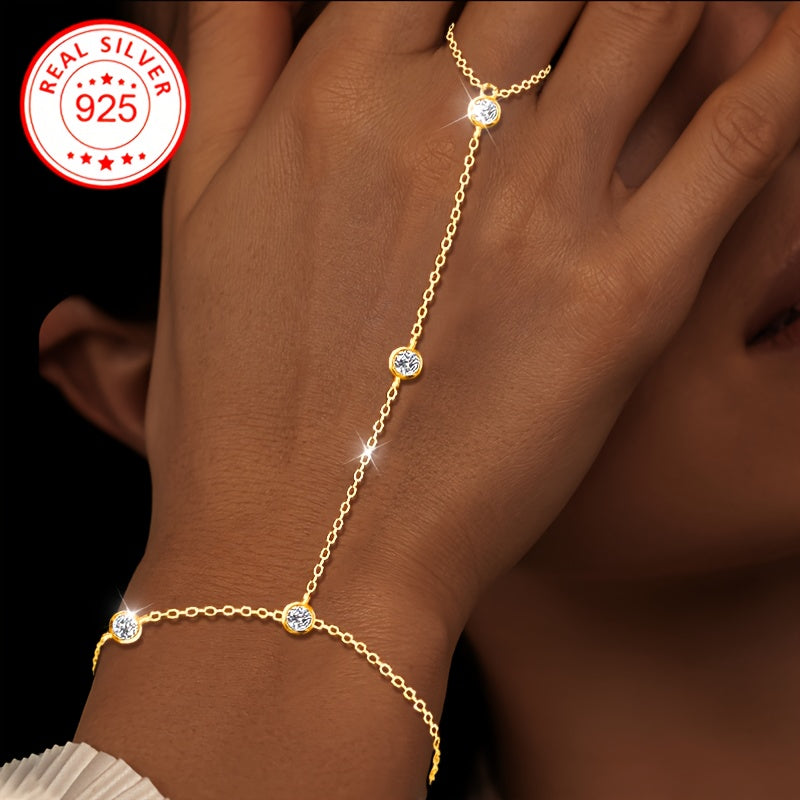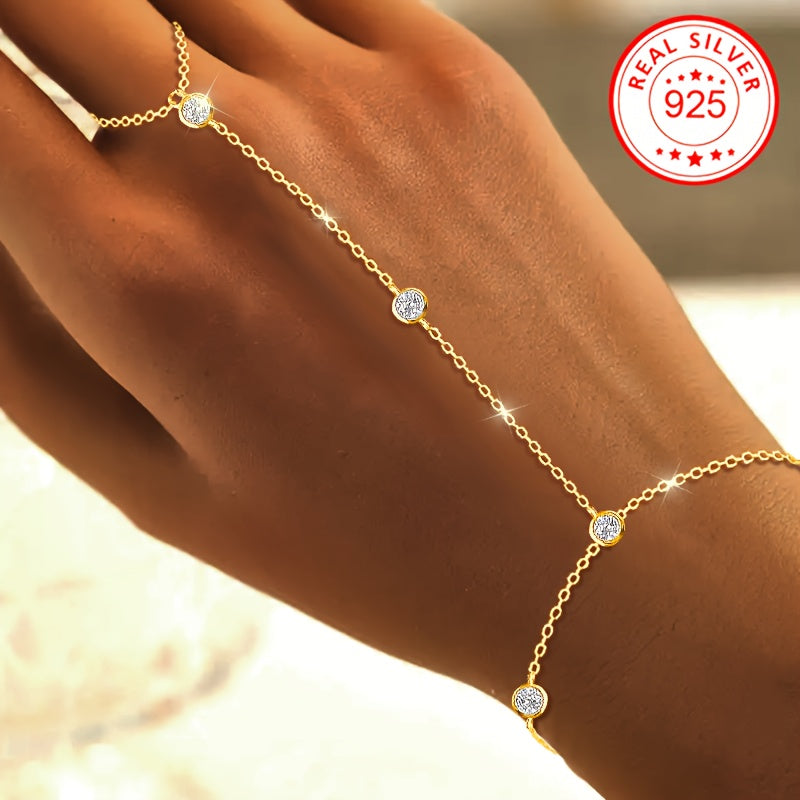 This Bohemian style ring bracelet is made of S925 silver with circular cubic zirconia inlay, perfect for everyday wear with low allergy potential.