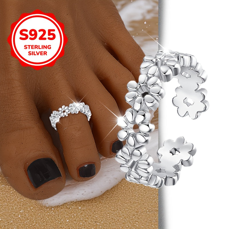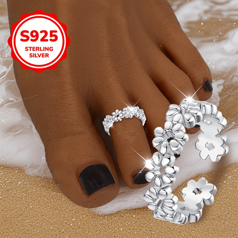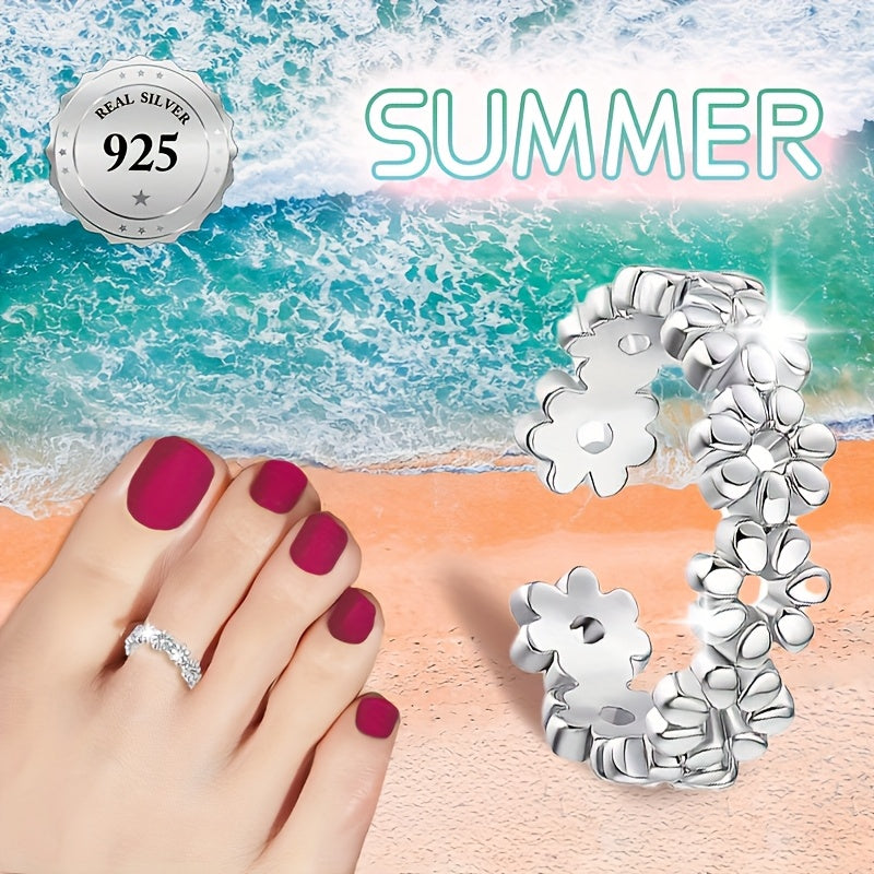 Add a touch of playful charm to your beach party, wedding, or holiday vacation look with this S925 sterling silver flower toe ring. This accessory is perfect for adorning your toes with a stylish twist.