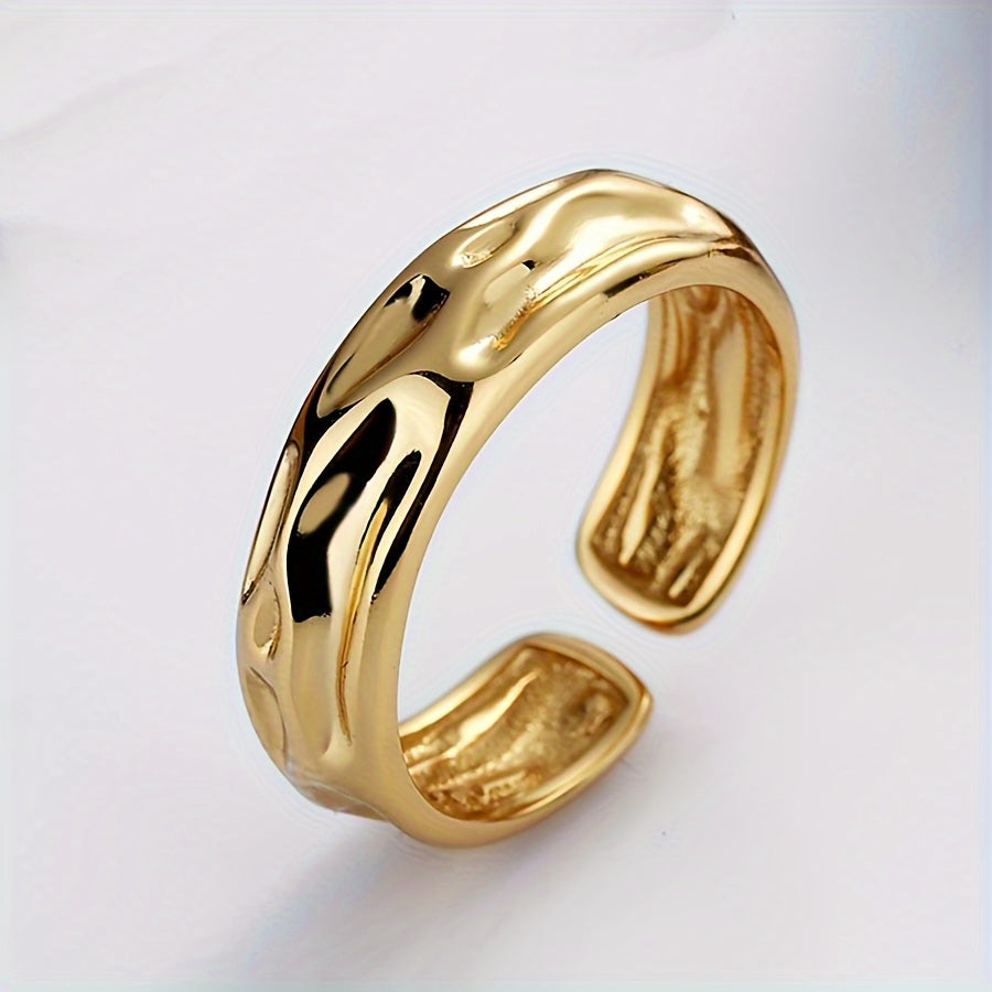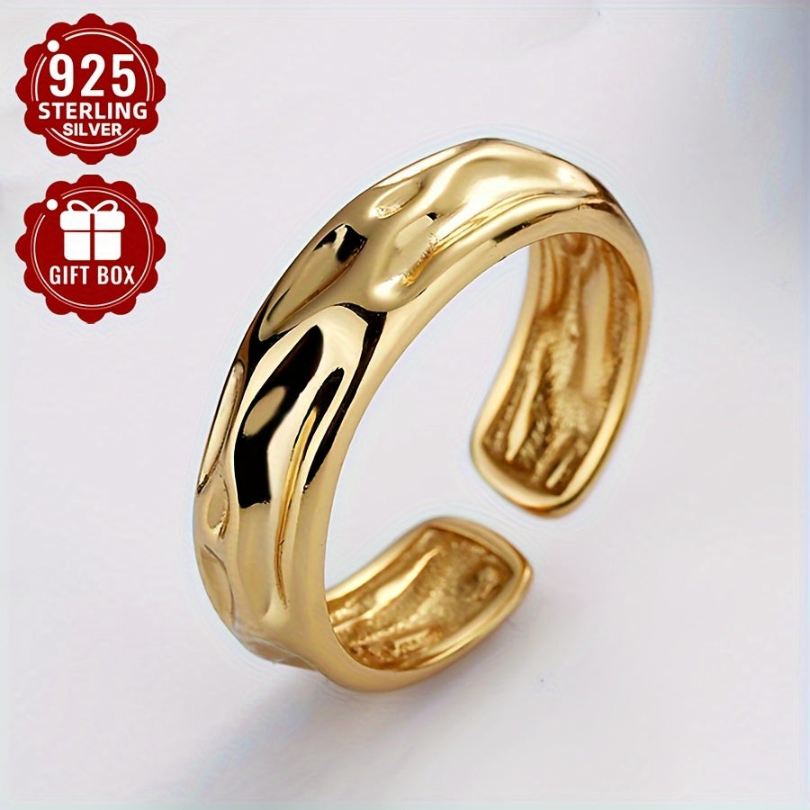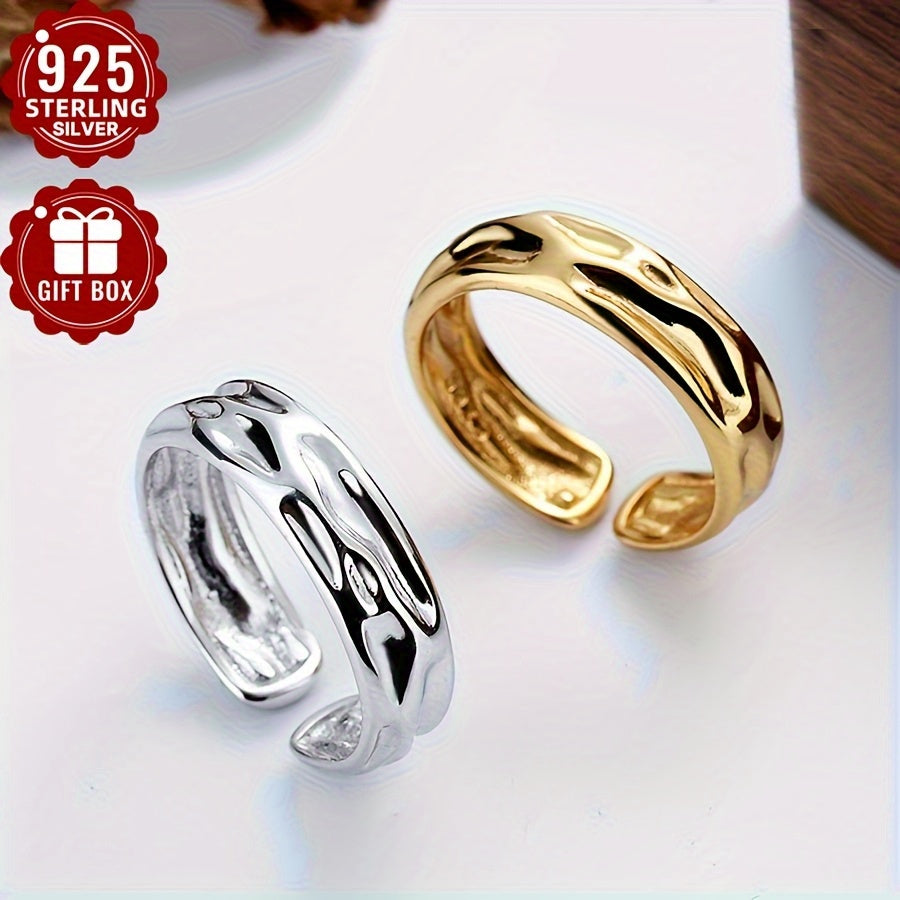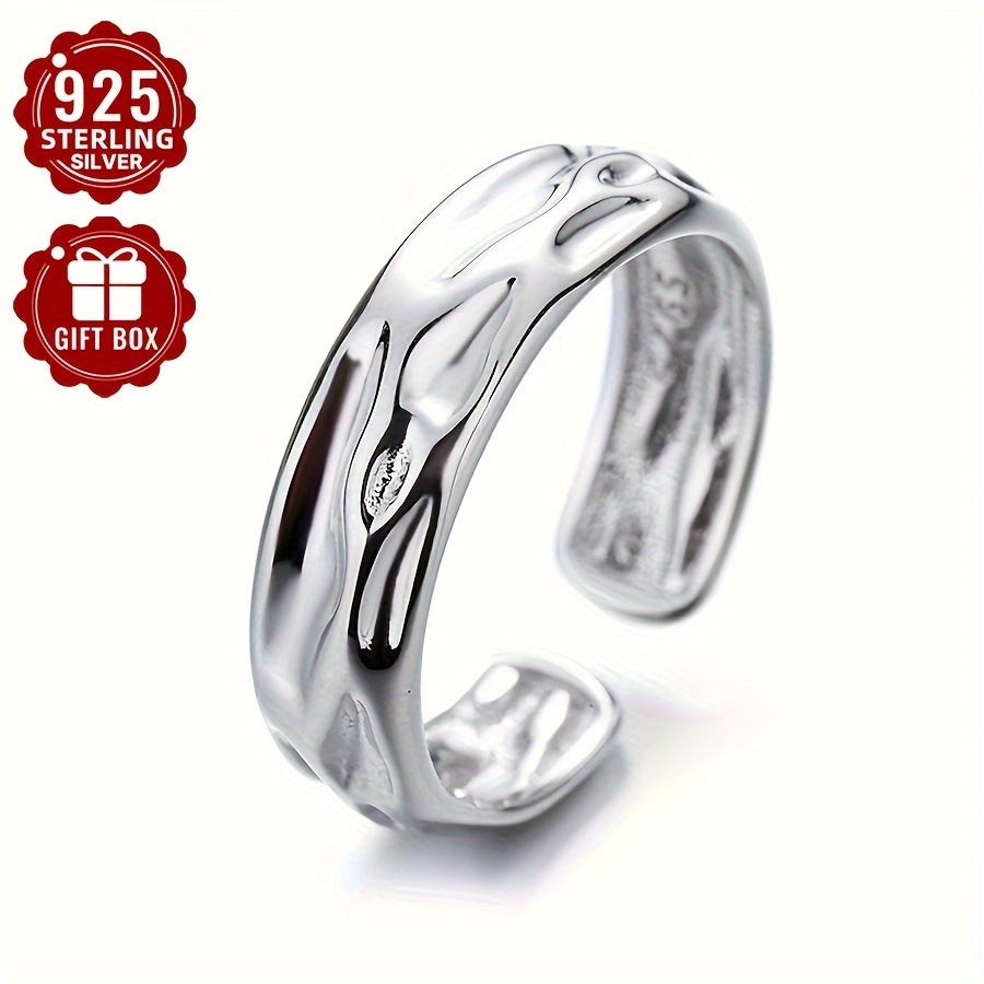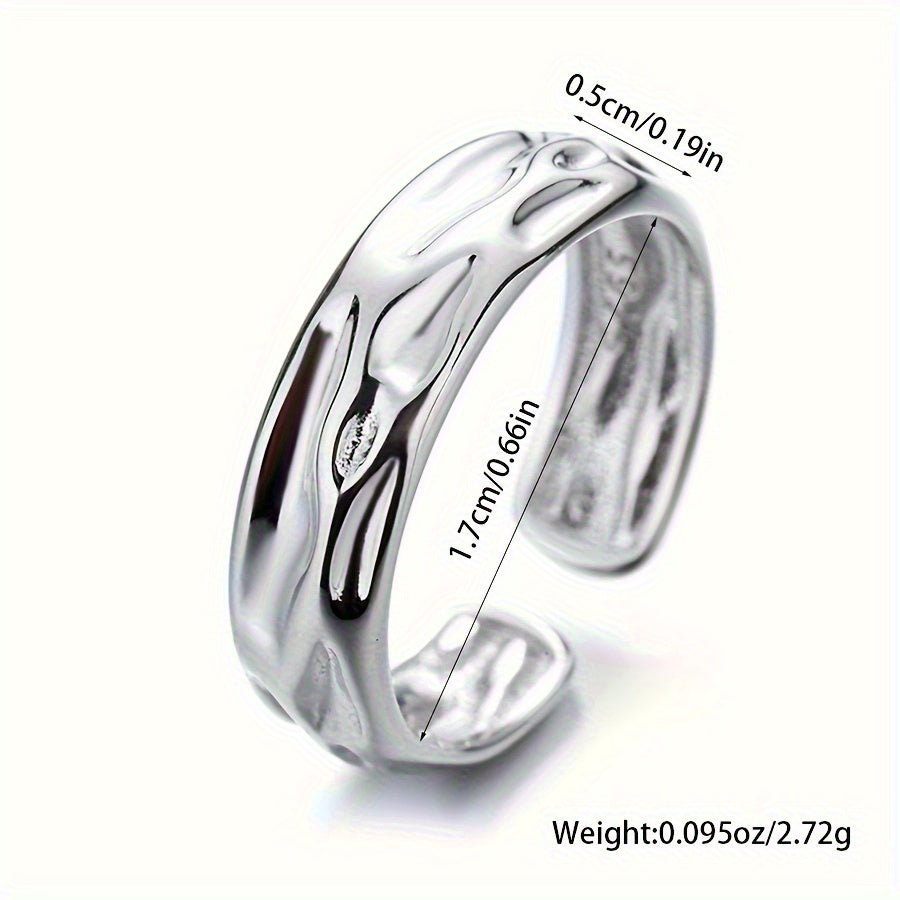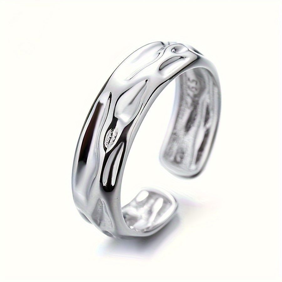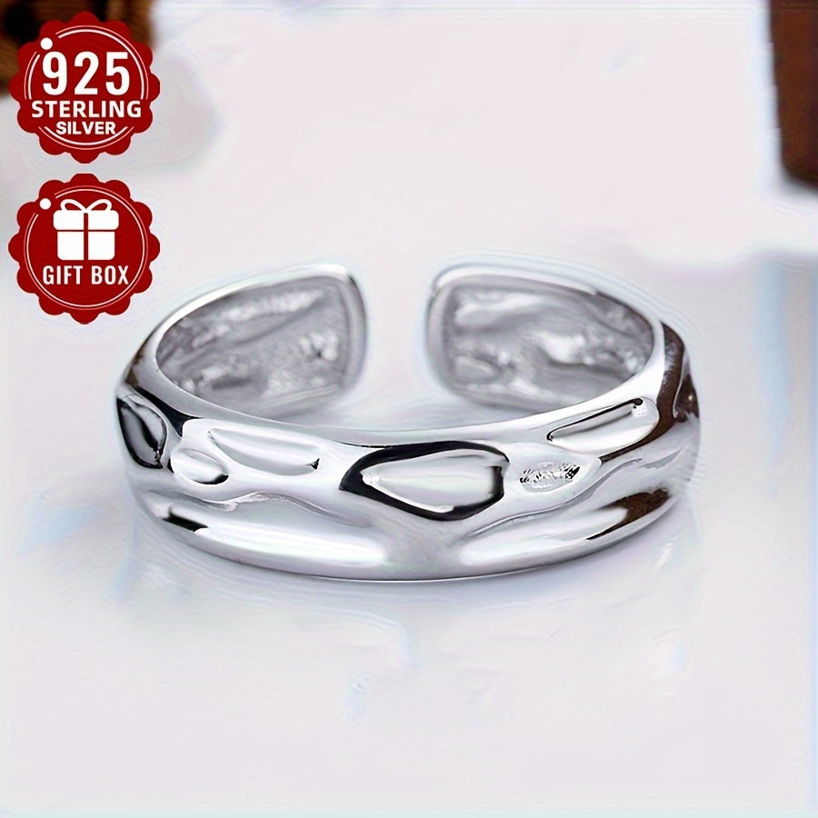 This minimalist open ring features a concave volcanic stone design in S925 sterling silver, perfect for daily wear or vacation.