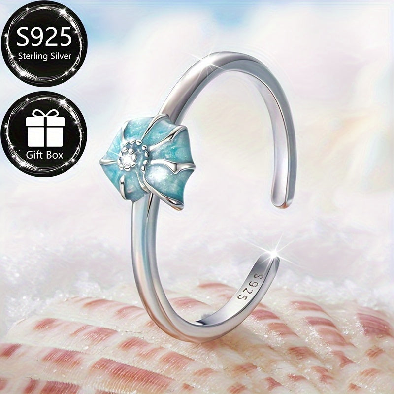This stunning S925 sterling silver open ring features a design inspired by the ocean wind with a snail shell inlaid with synthetic zirconia. Perfect for parties and gatherings.