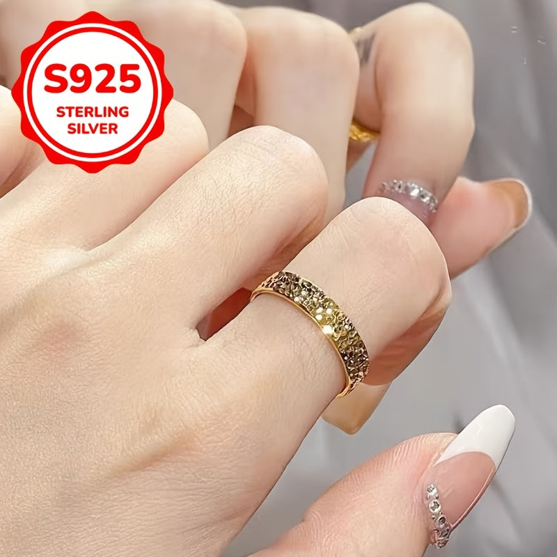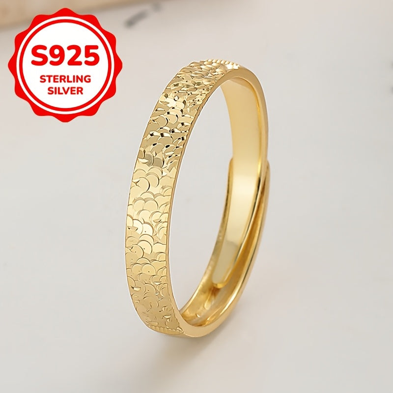 S925 Sterling Silver Open Ring Sparkling Low Sensitivity Adjustable Band