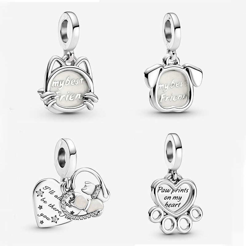 Add a touch of cuteness to your accessories with these silvery letters detail puppy or kitty theme pendant beads. Perfect for bracelets, necklaces, and more!