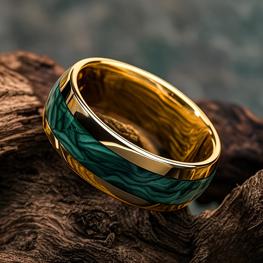 Ideal for anniversaries, Valentine's Day, and parties, this stainless steel ring features a vibrant green turquoise inlay. It makes a perfect gift for partners or friends.