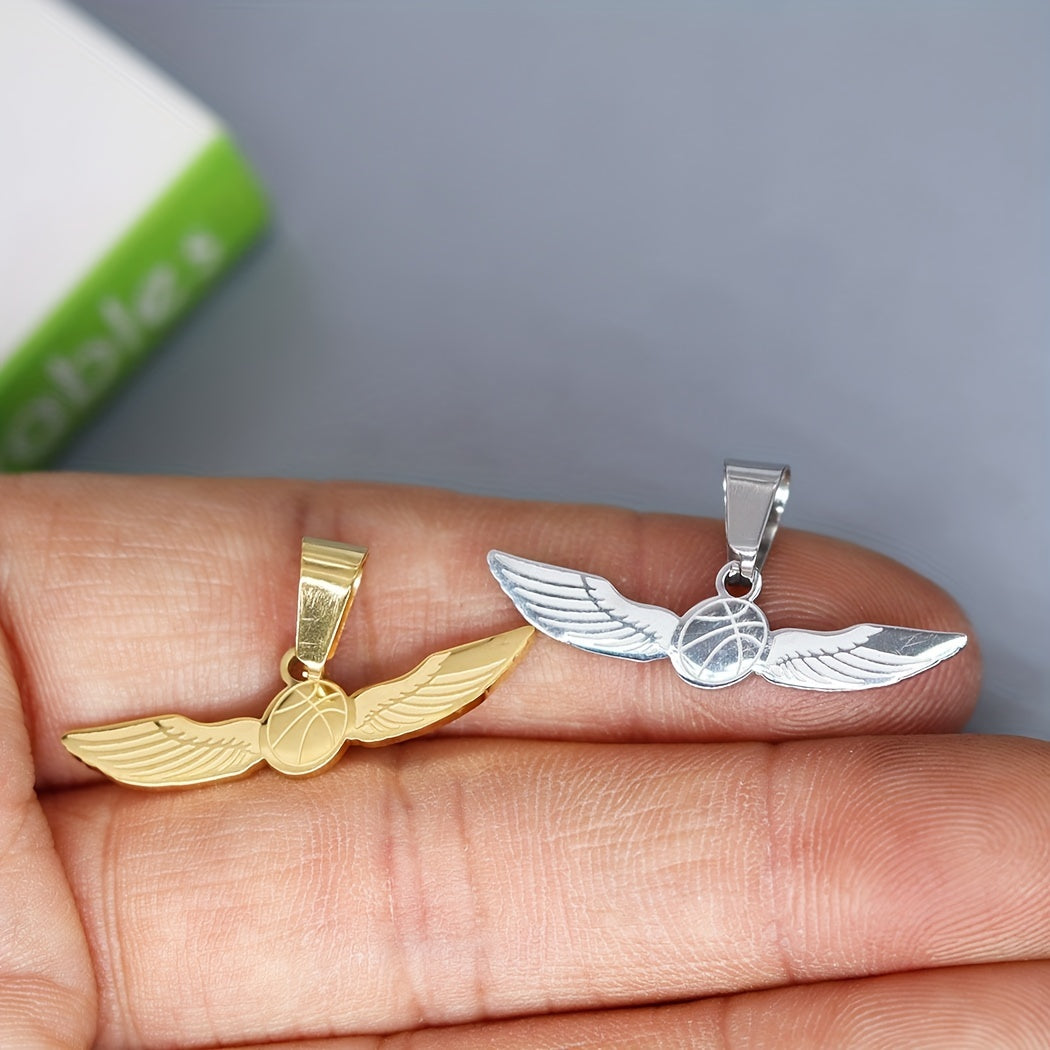 This stainless steel necklace features a winged basketball pendant, perfect for sports enthusiasts and those with a punk style. It's a great choker necklace for men.