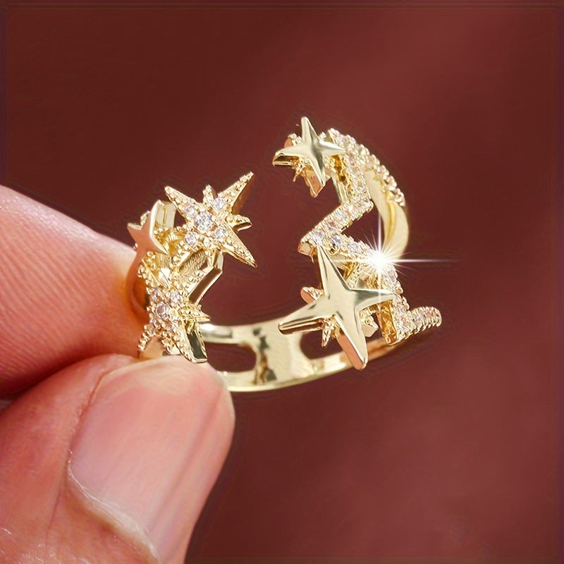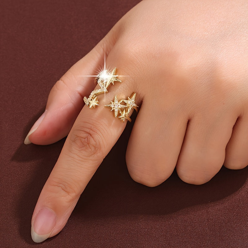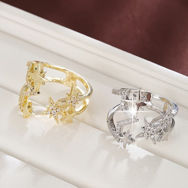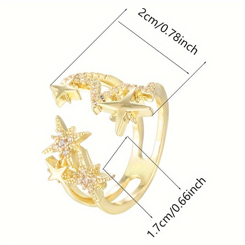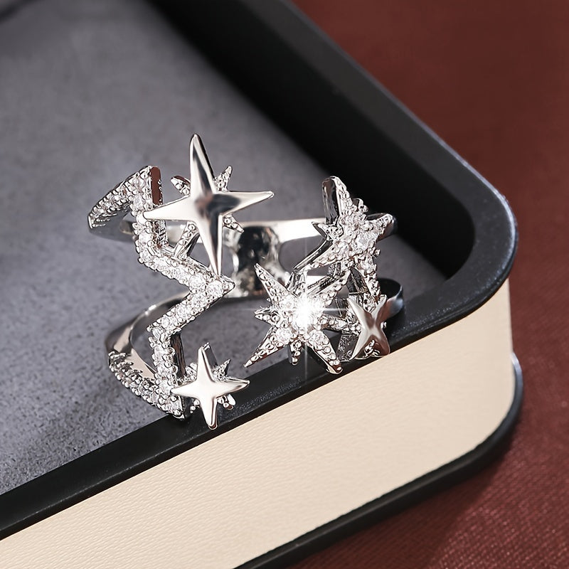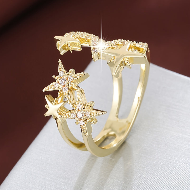 This adjustable ring features a star design with synthetic cubic zirconia on a copper base. Ideal for daily wear and perfect for gift giving all year round.