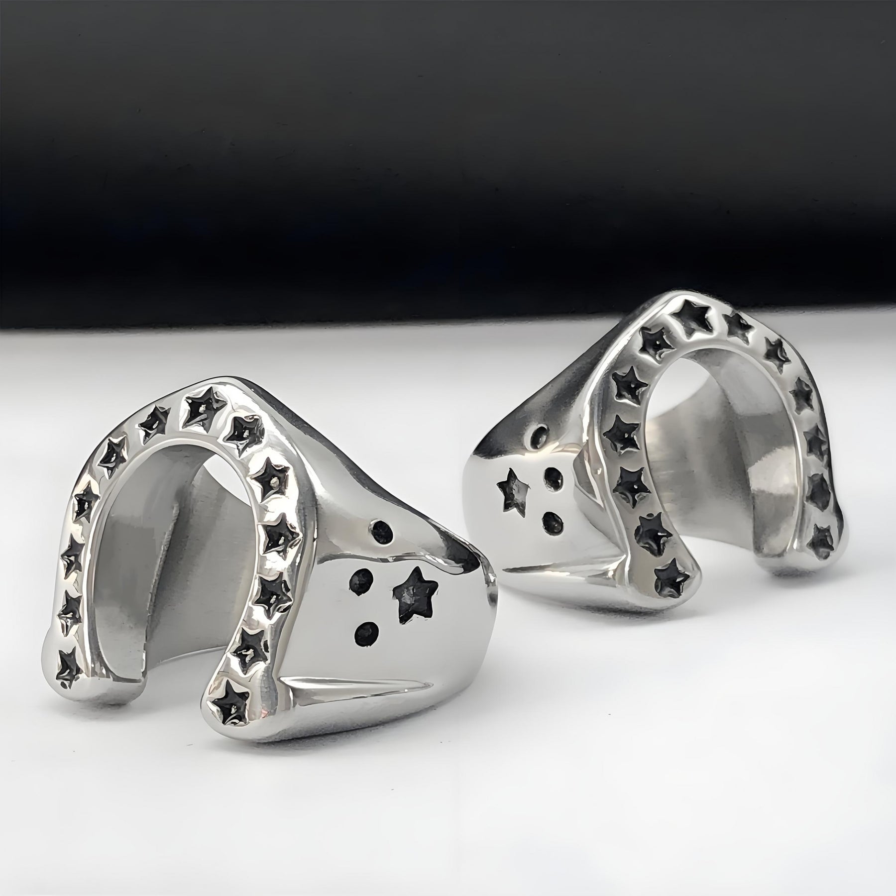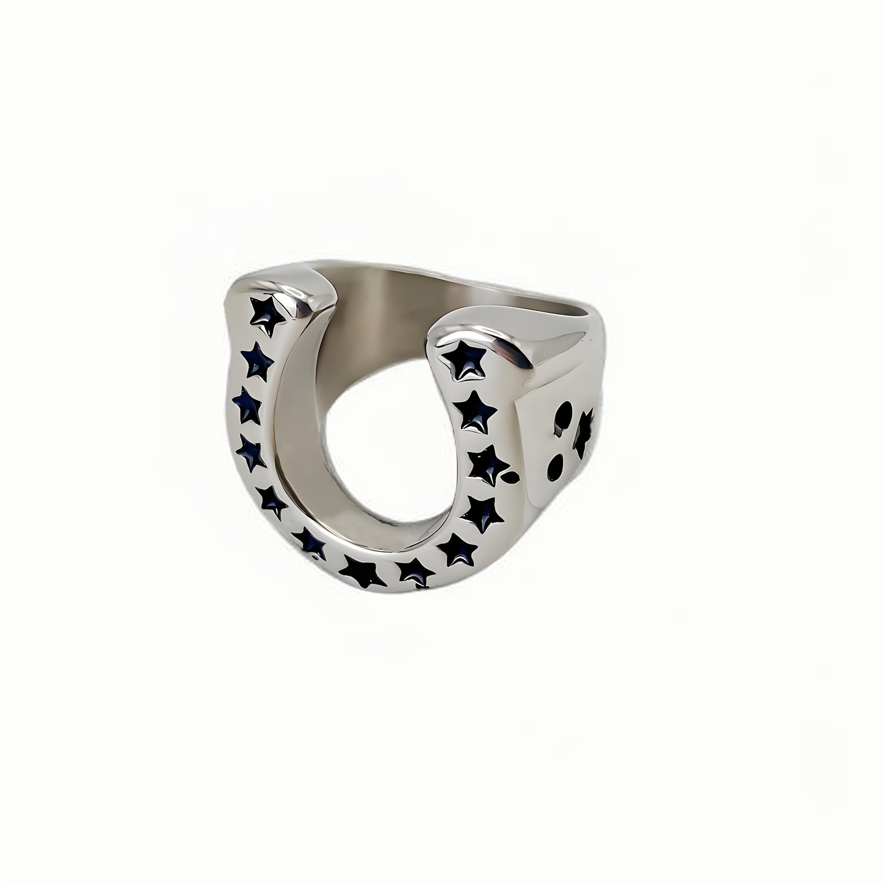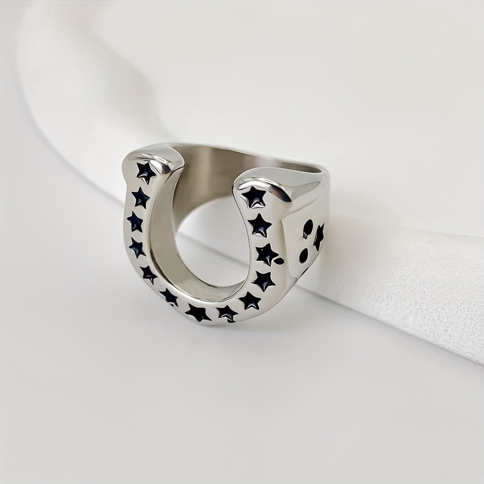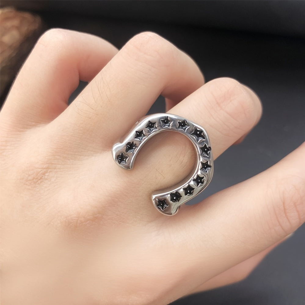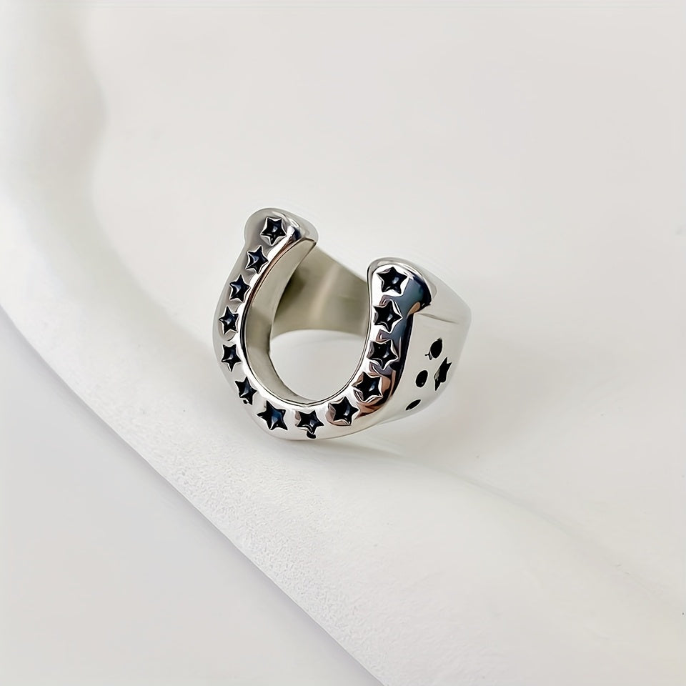 Add a touch of edgy style to your everyday or party look with this U-shaped star ring. Crafted from stainless steel, this unisex ring features synthetic stones for a starry polished finish.