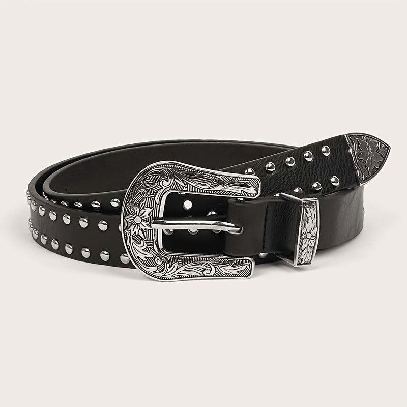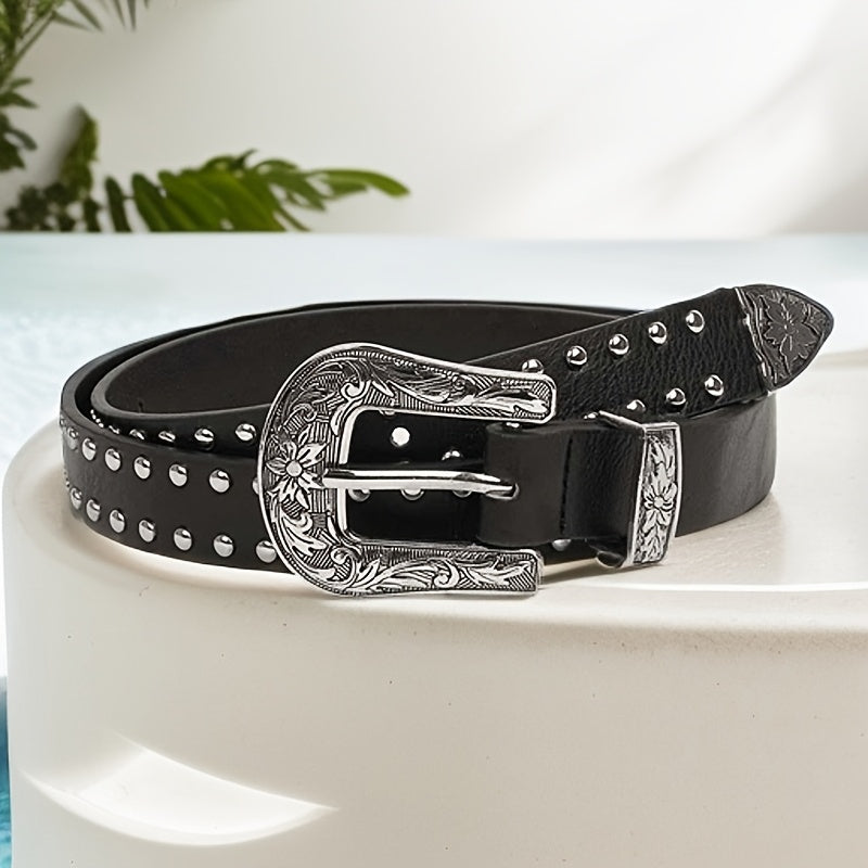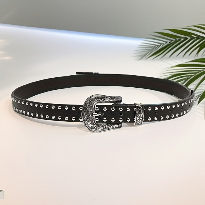 This studded belt is perfect for adding a punk edge to your casual, sports, or party outfits all year round.