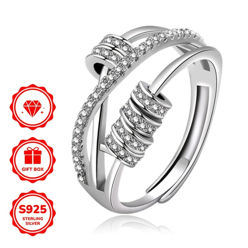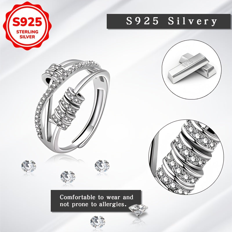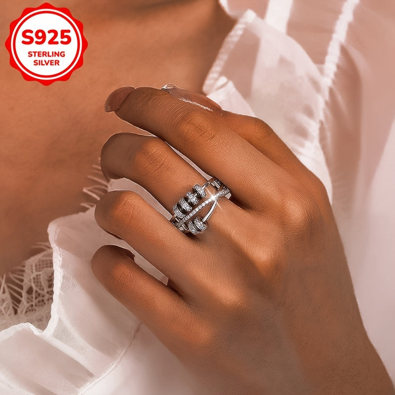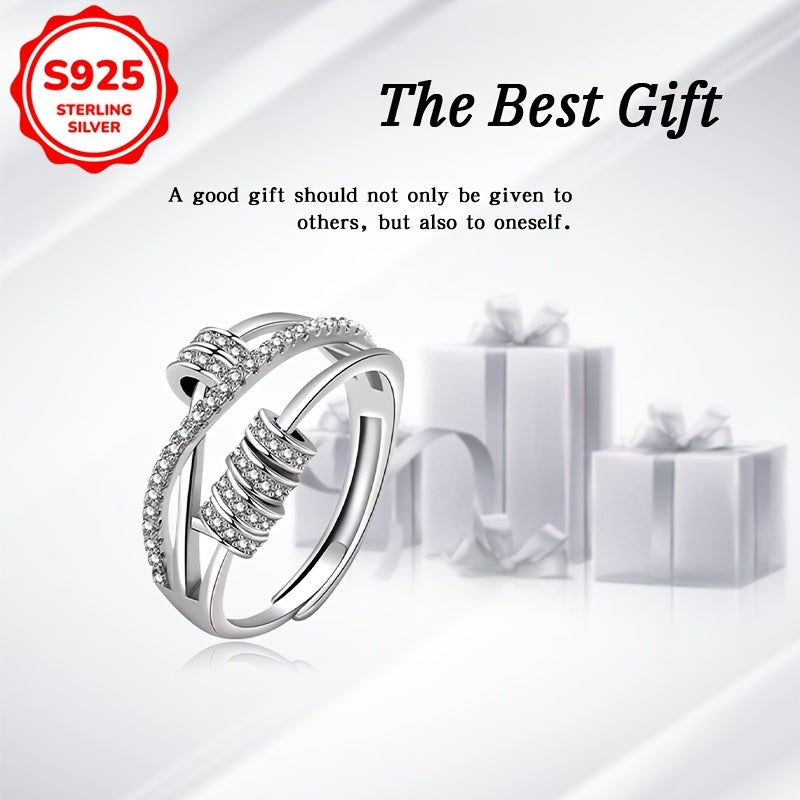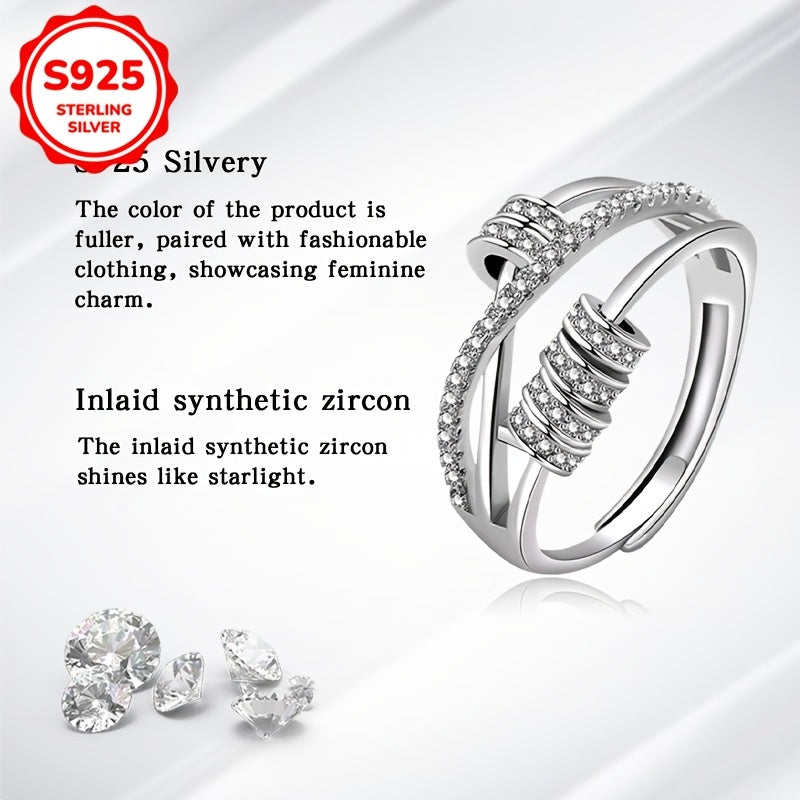 Stylish Open Ring - Rotating Zirconia Inlay, 3.5g - Women's Anxiety Relief