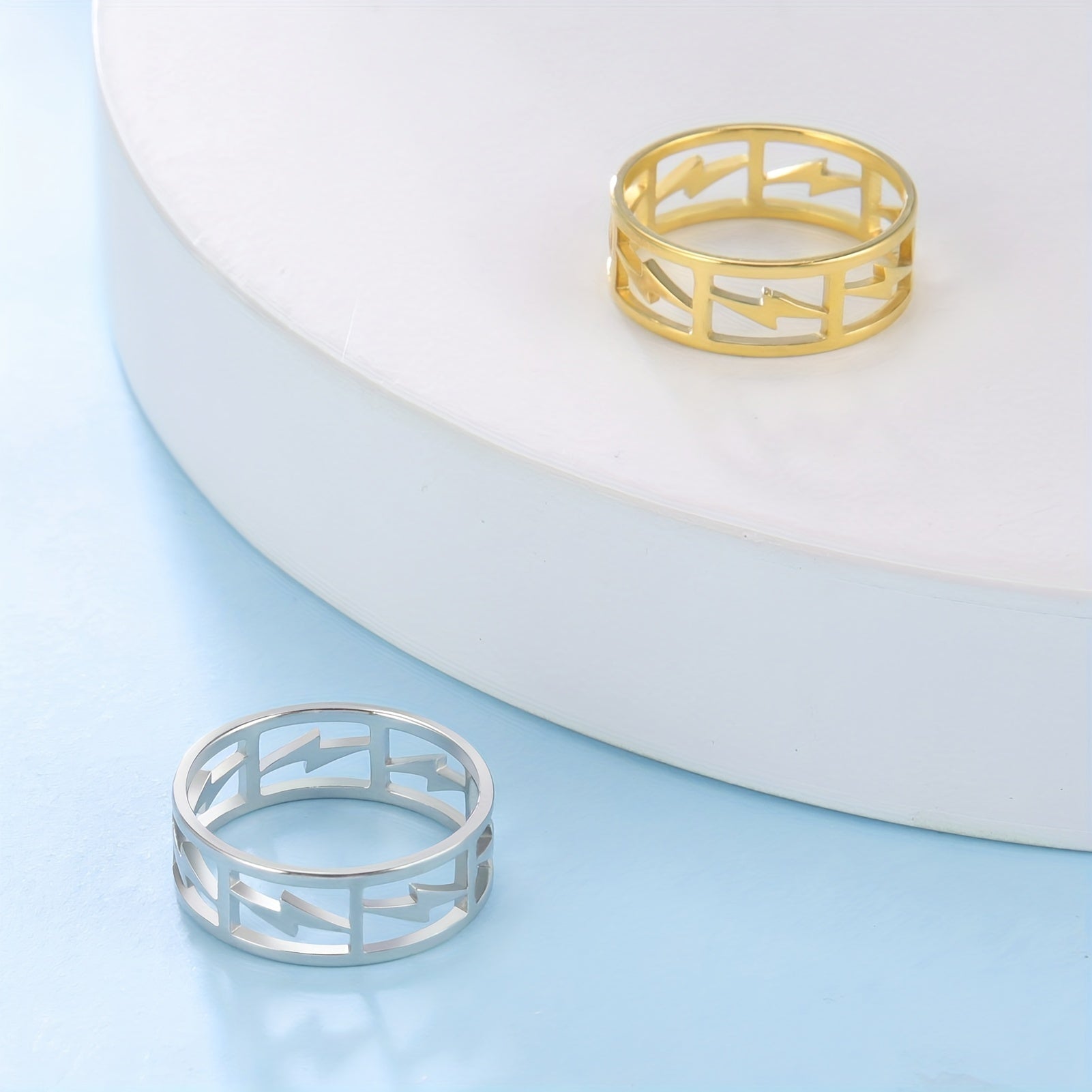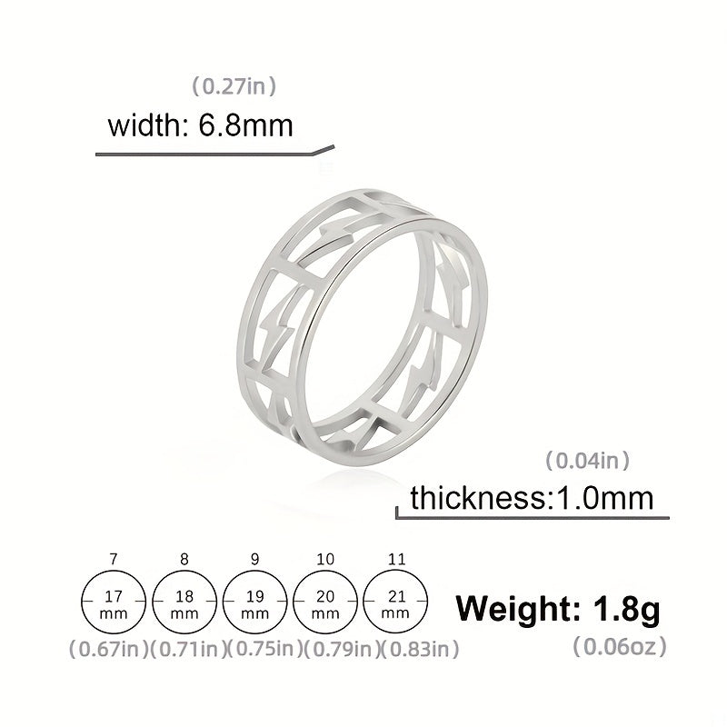 This ring features a unique design with a hollowed-out square lightning cycle pattern, perfect for those who appreciate bohemian style jewelry. Made of high-quality stainless steel, this ring is durable and long-lasting.