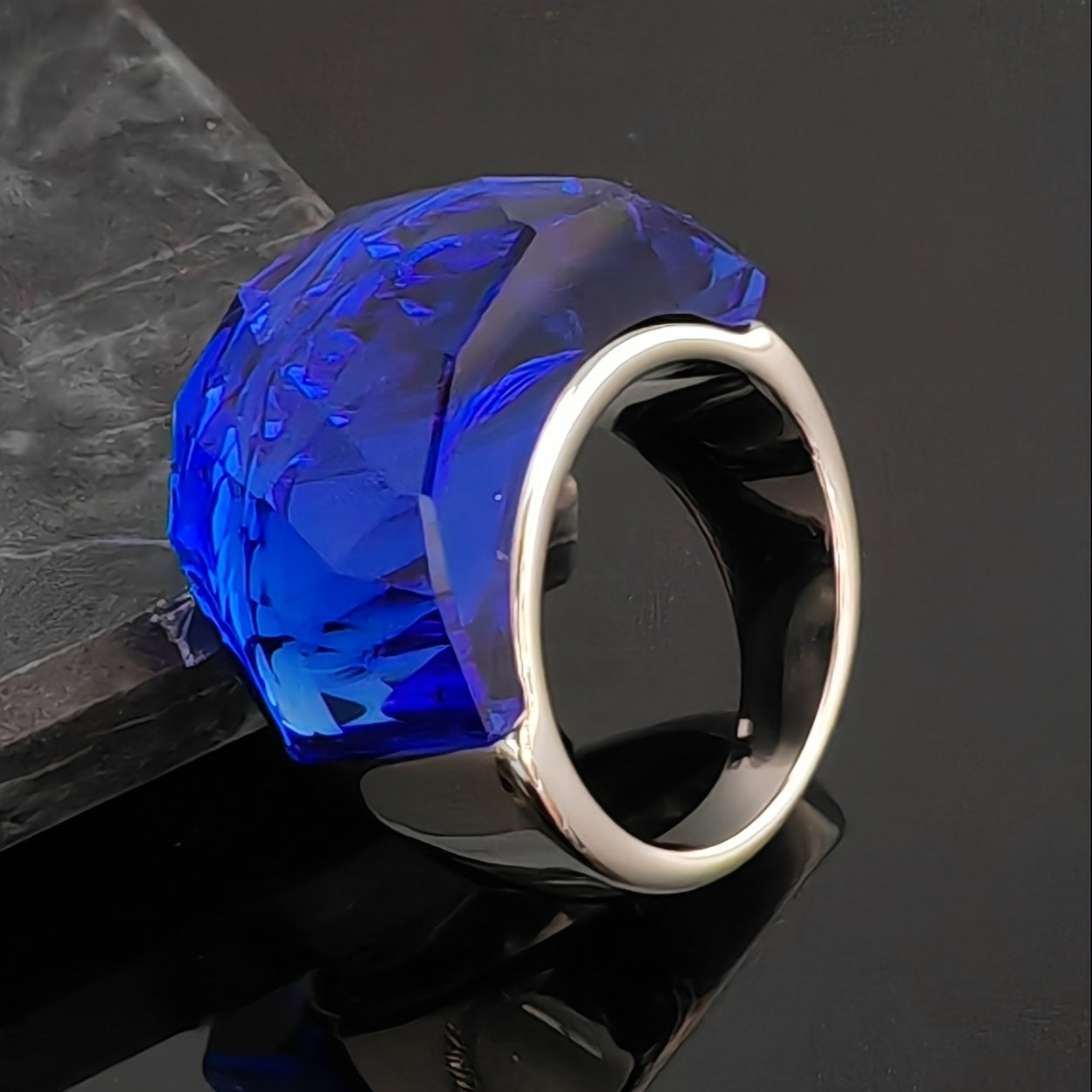 This stunning ring is made of high-quality Steel 316 stainless steel and features a synthetic gemstone cubic artificial crystal glass in a geometric design. Perfect for female titanium steel enthusiasts.