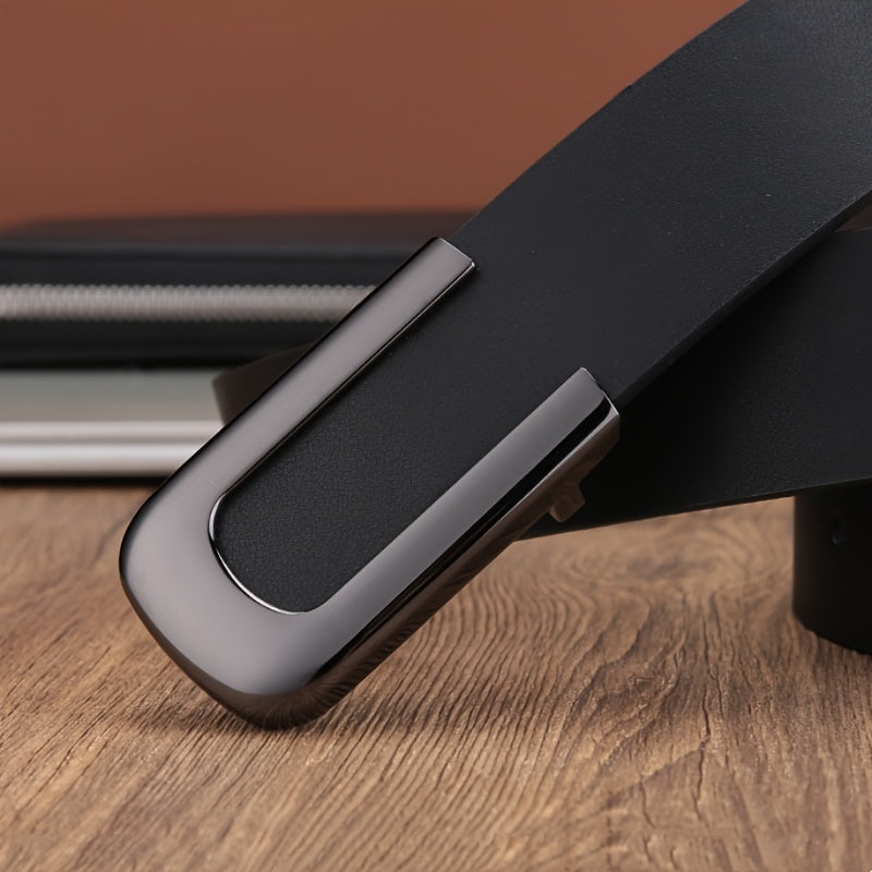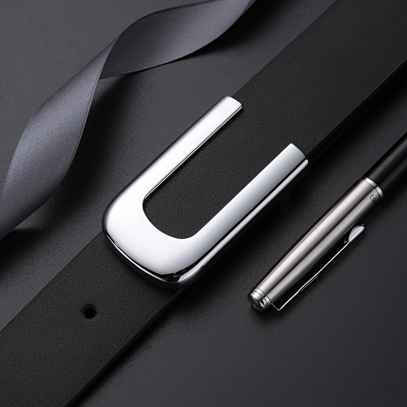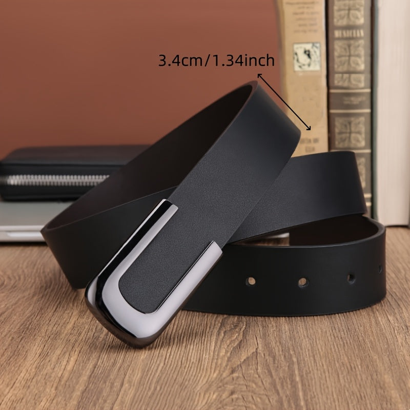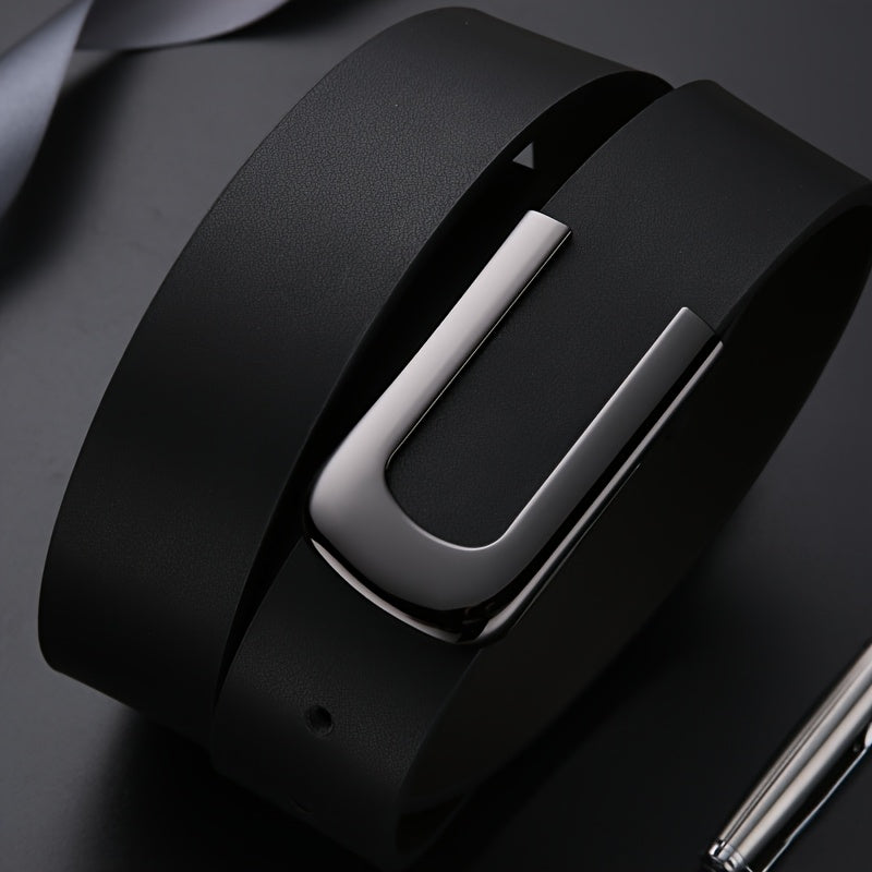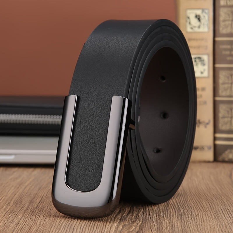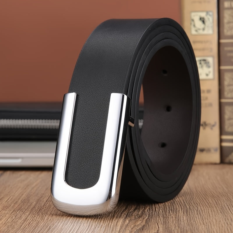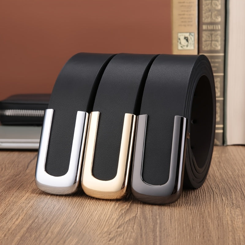 Elevate your casual or special occasion attire with this modern and durable cowhide belt featuring a sleek U-shaped buckle design.
