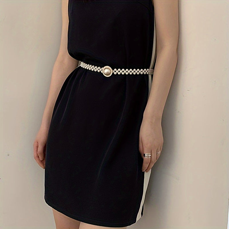 Elevate your outfit with this lovely pearl belt accessory that complements dresses and shirts. It's perfect for casual and sweet styles, ideal for everyday wear.