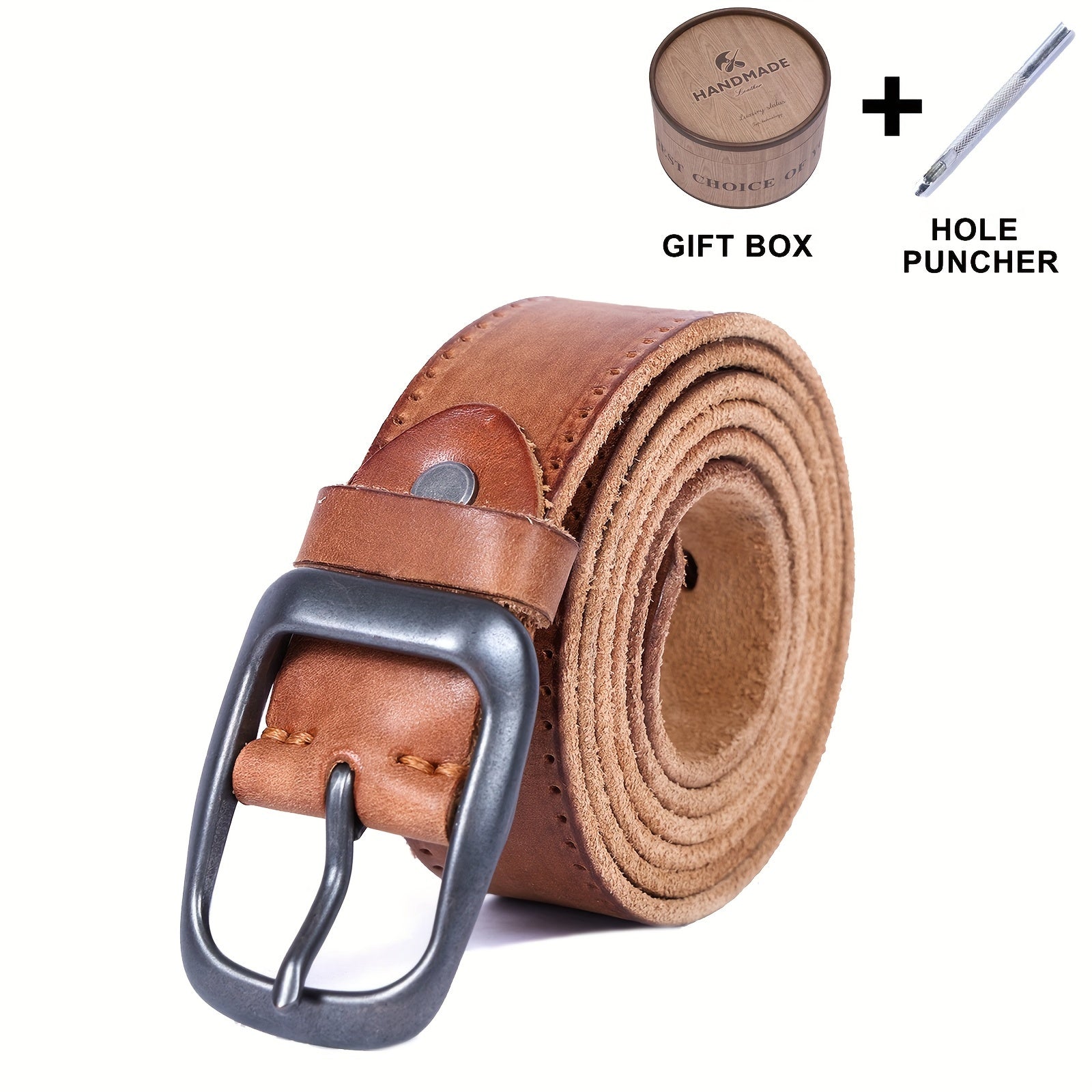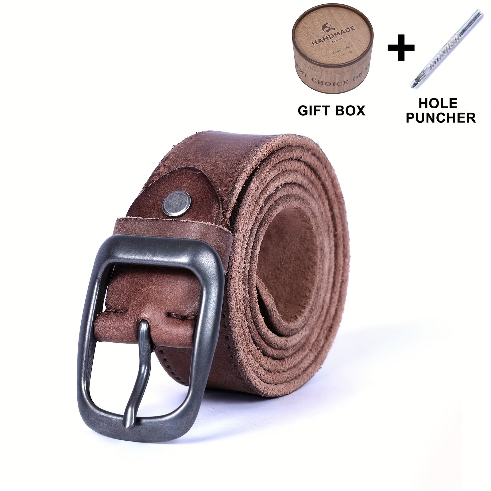 Upgrade your style with this retro, top layer cowhide leather belt. A perfect gift for men, dad, or boyfriend. Ideal for casual and formal occasions.