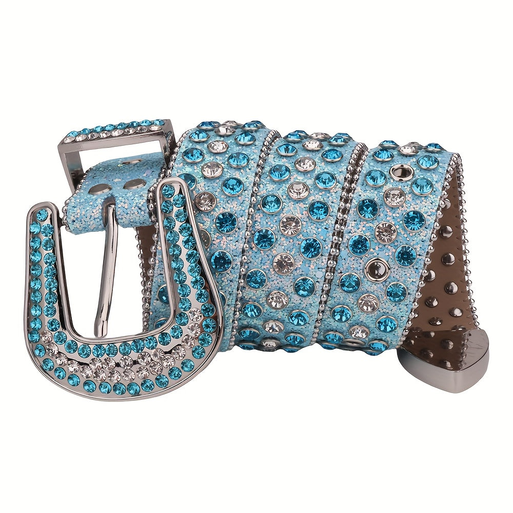 Add a touch of bling to your outfit with this stylish men's rhinestone belt. The sparkling rhinestones make it a perfect accessory for jeans or casual outfits.