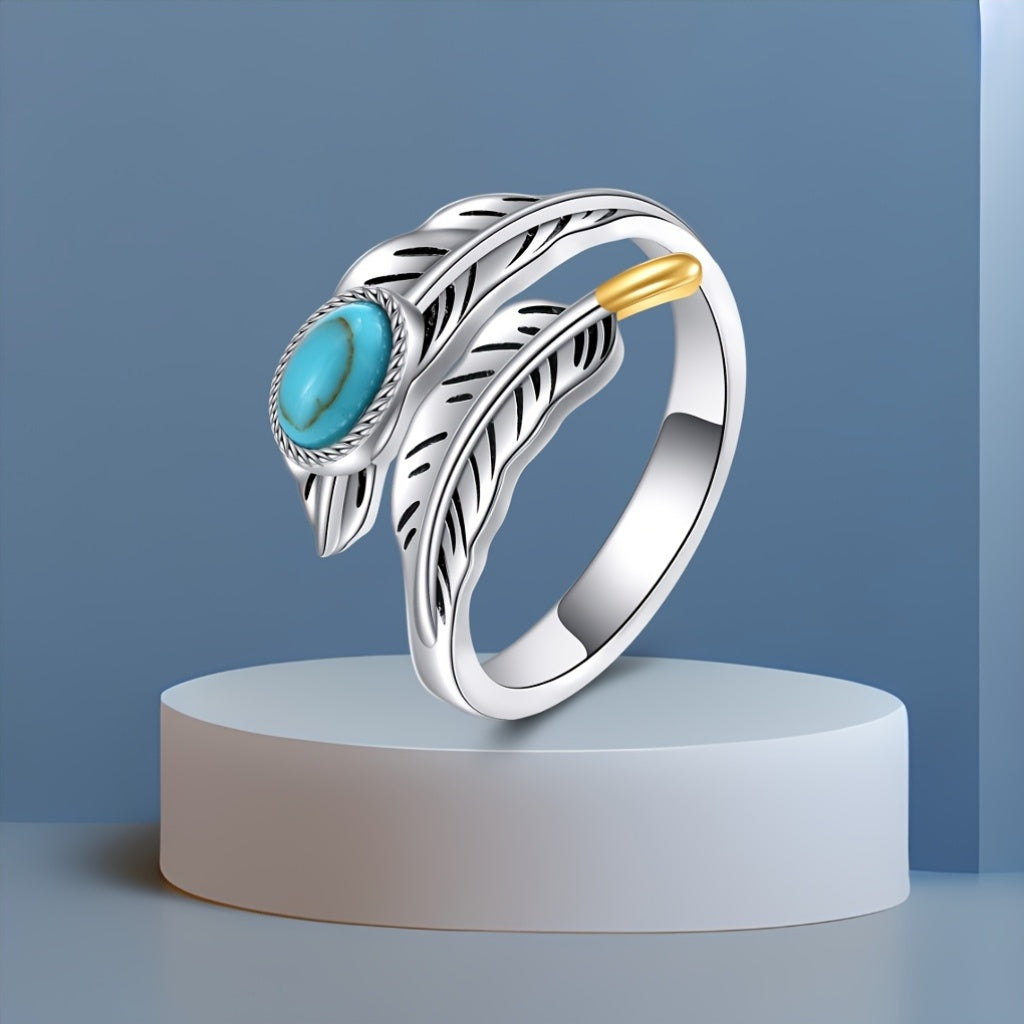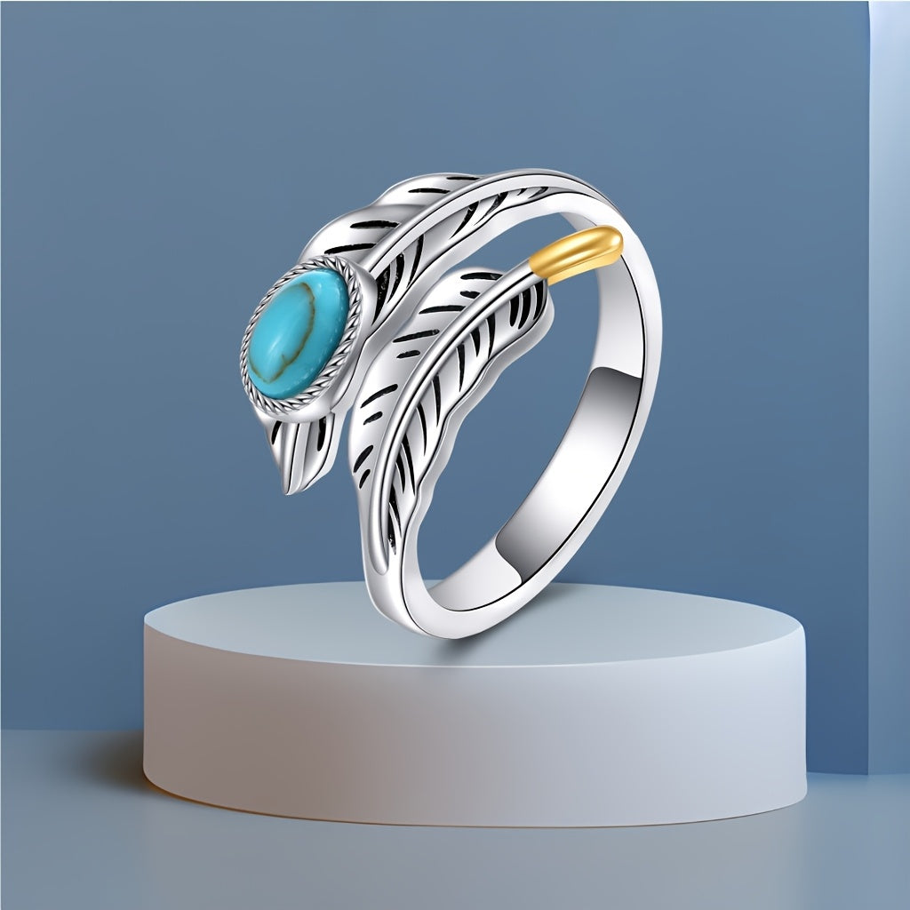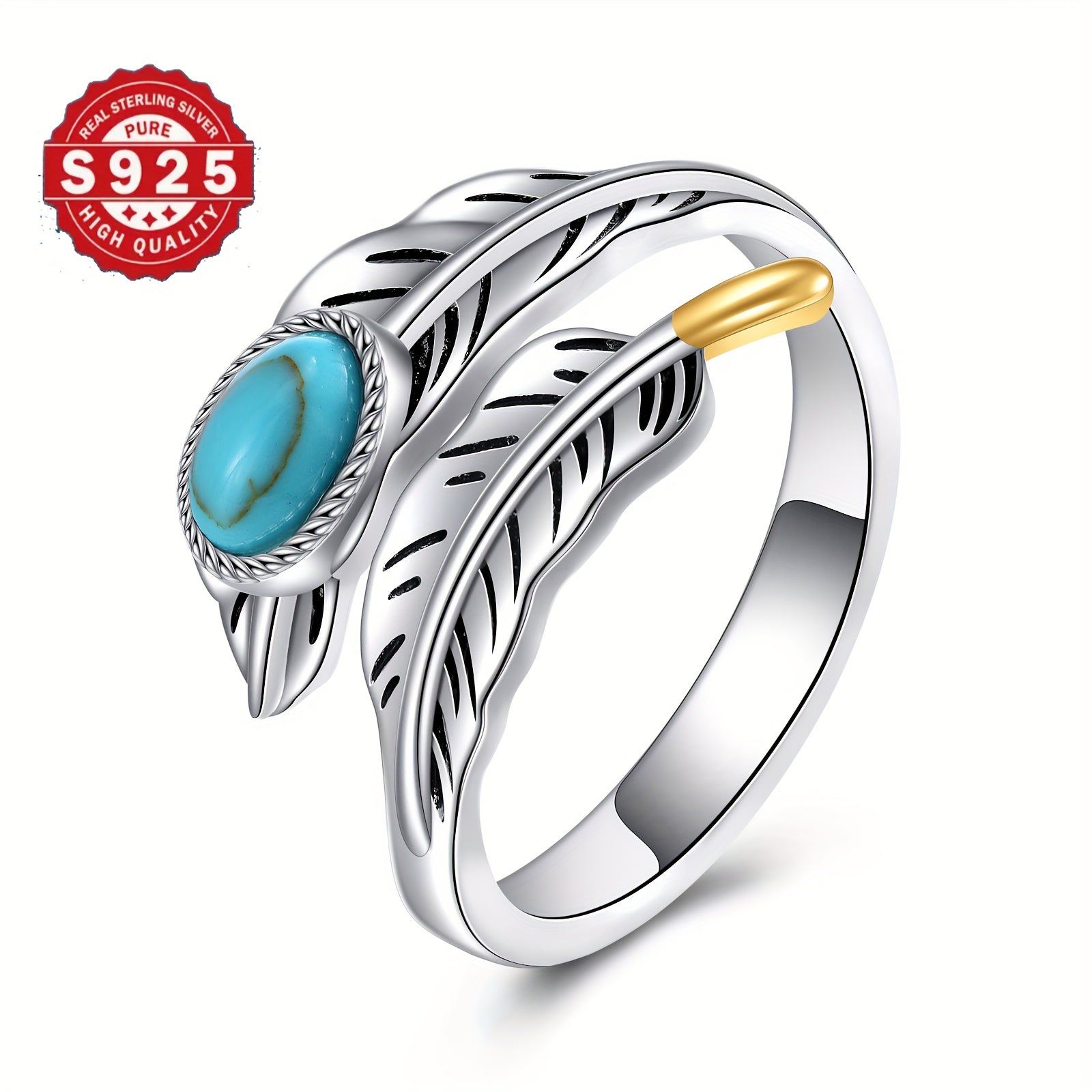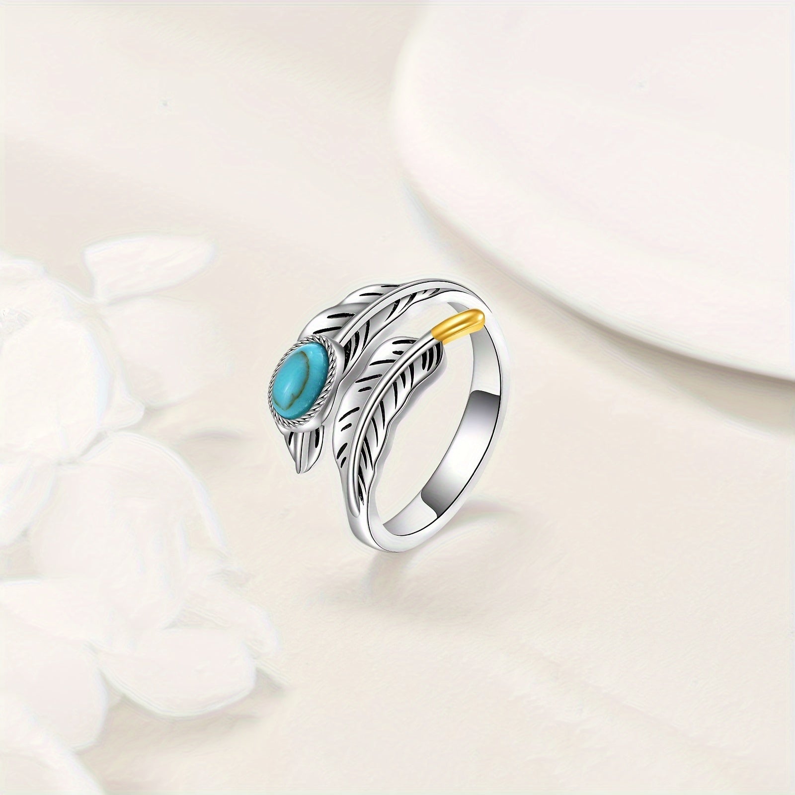 Turquoise Feather Ring Women's Sterling Silver Jewelry Gift