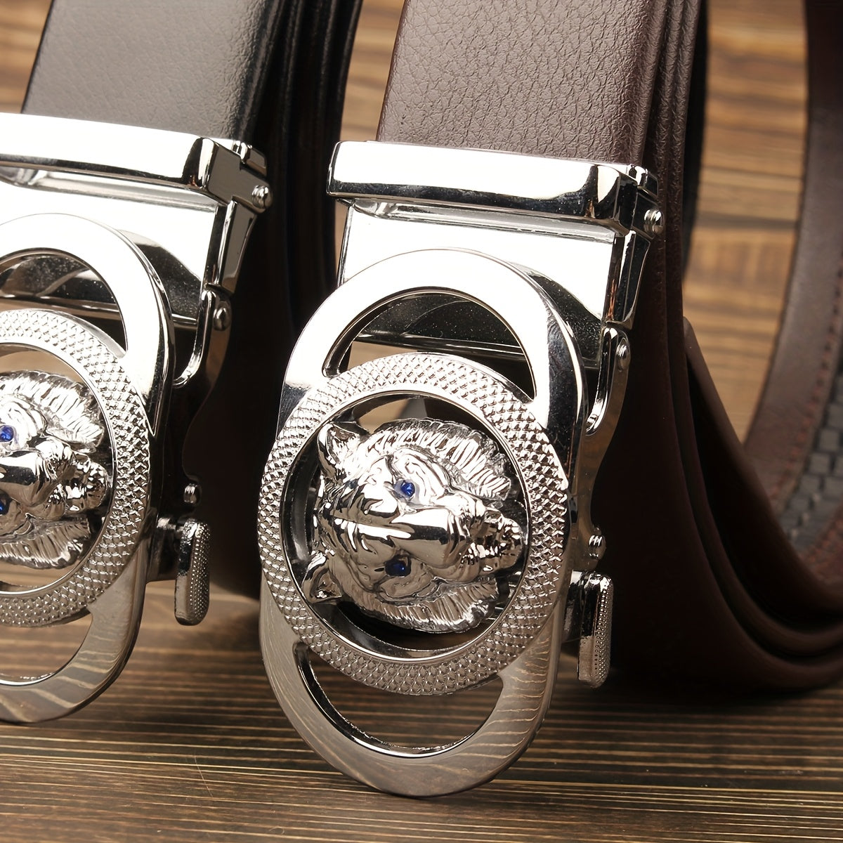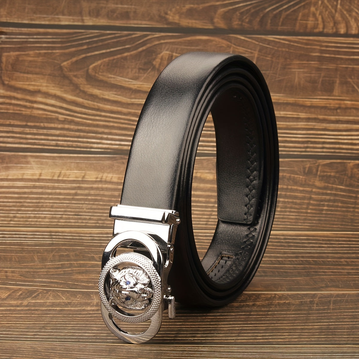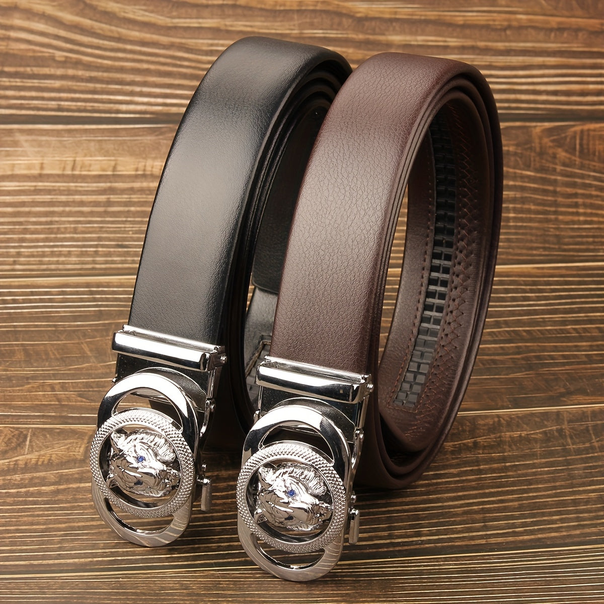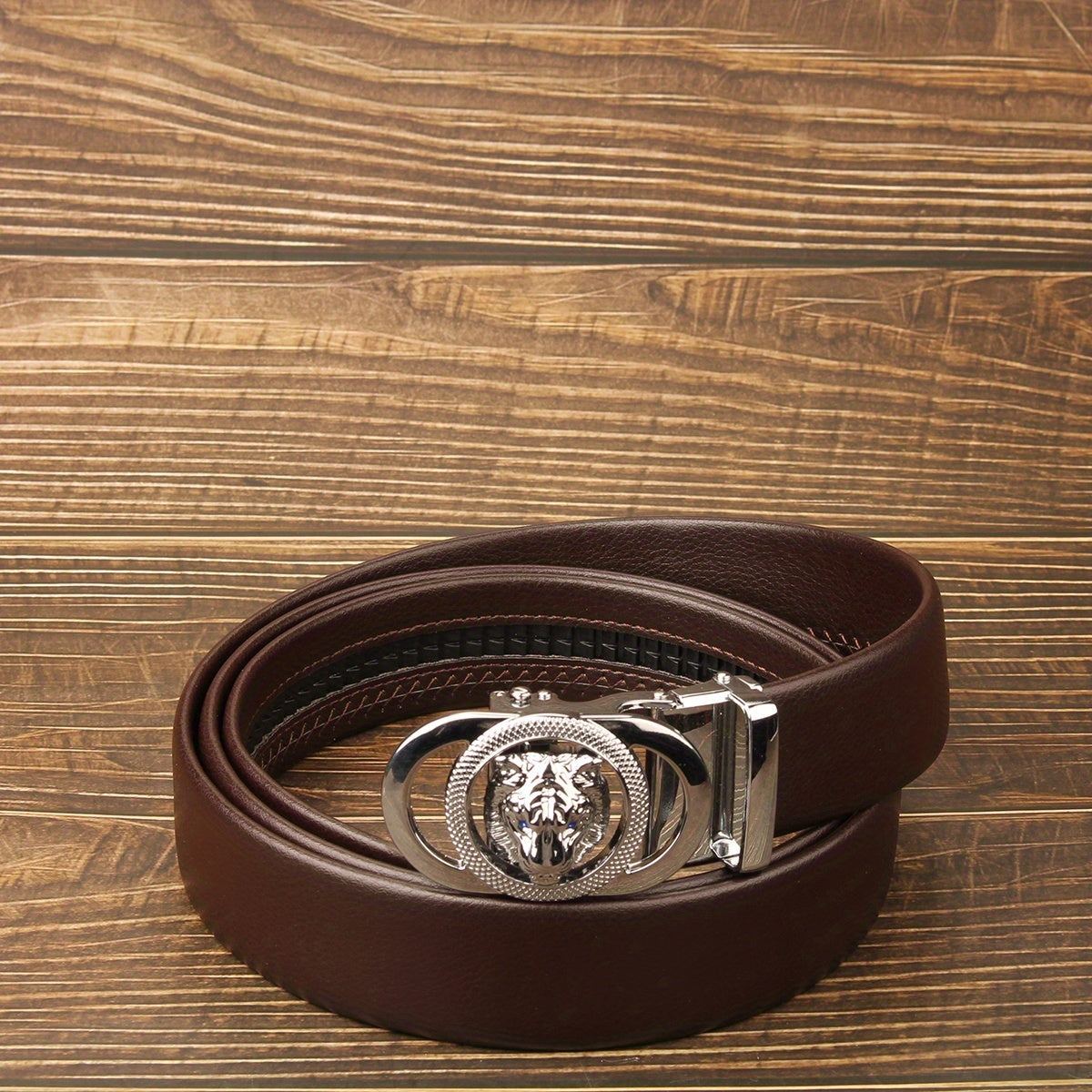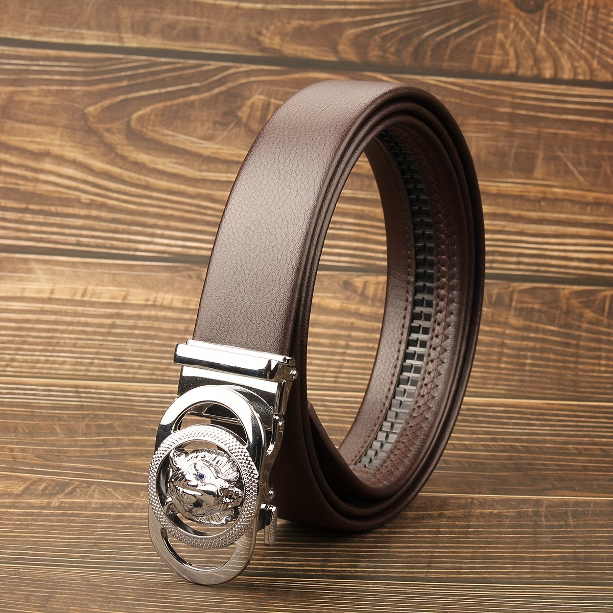 This unisex belt features a sleek brown faux leather strap and a stylish chrome tone automatic buckle. It is versatile for both men and women, perfect for casual or formal outfits.