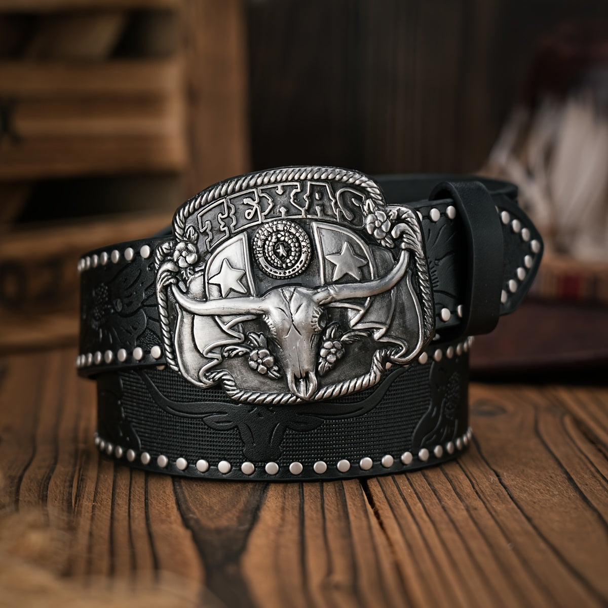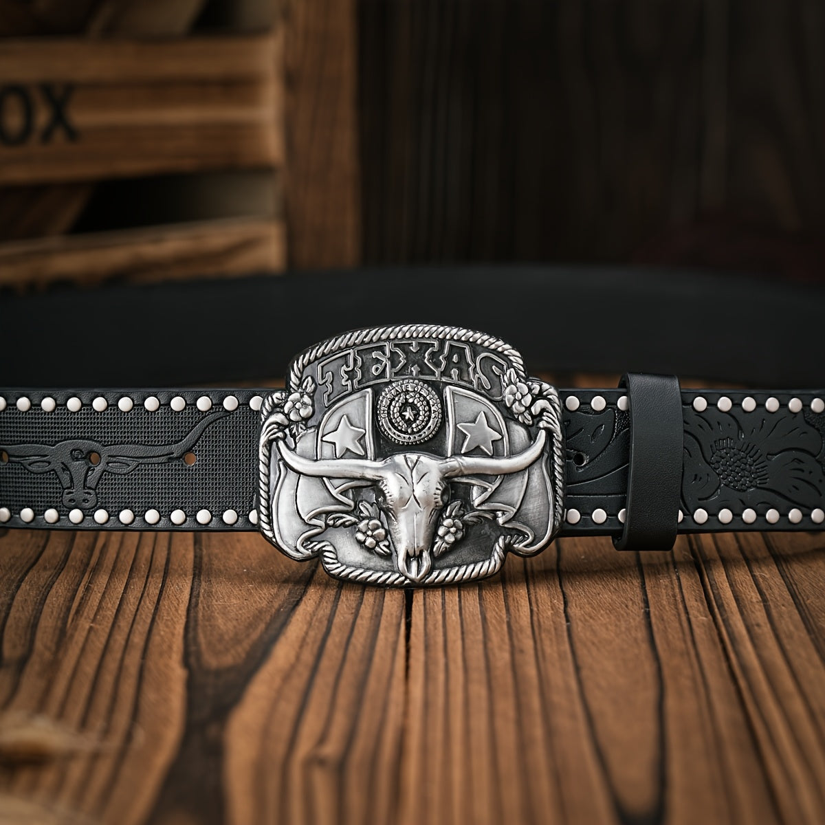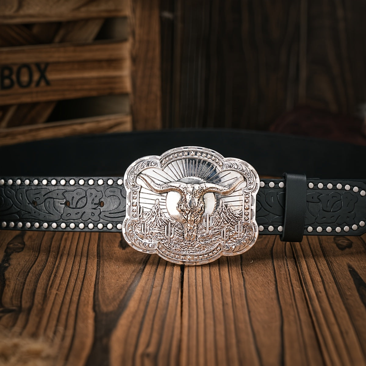 Embrace the western vibe with this casual unisex belt featuring a golden bull head buckle and animal embossed design. Made with high-quality PU material.