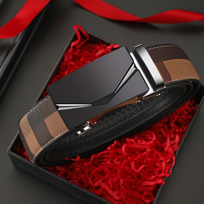 Adjustable length stylish plaid belt suitable for men and women. Ideal for business casual attire, a thoughtful gift for Father's Thanksgiving.
