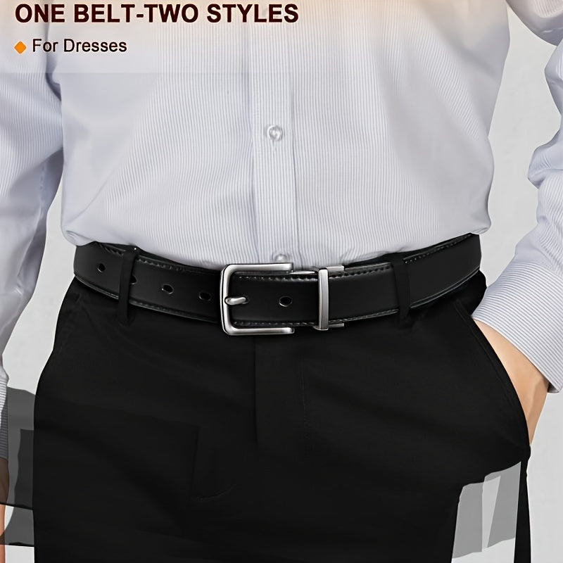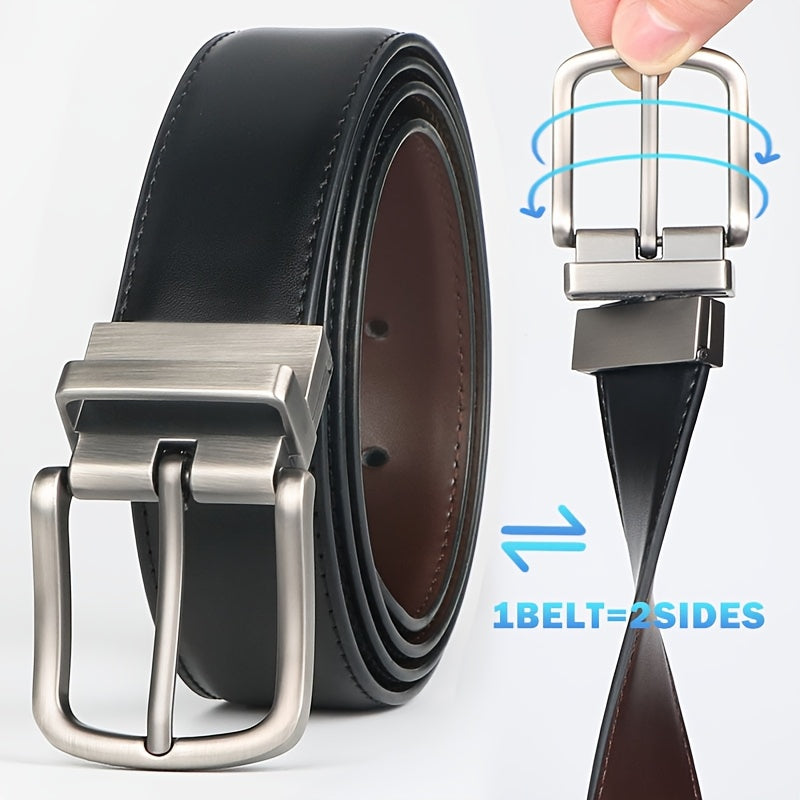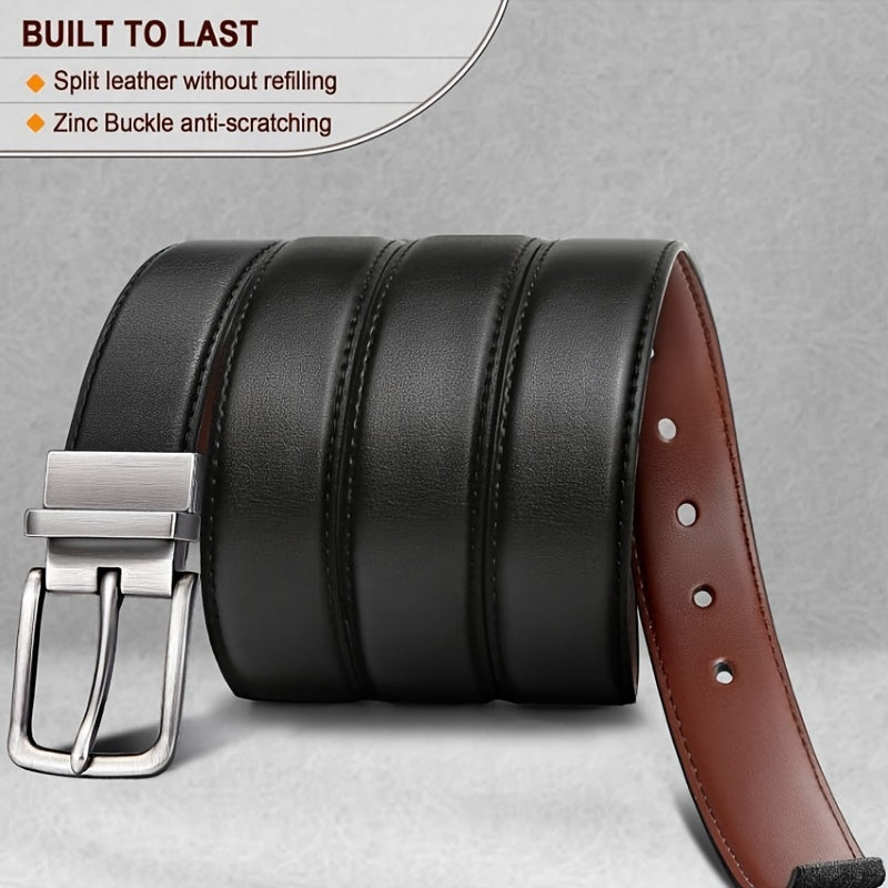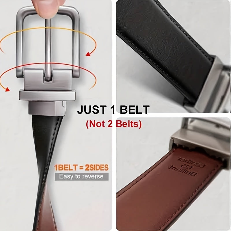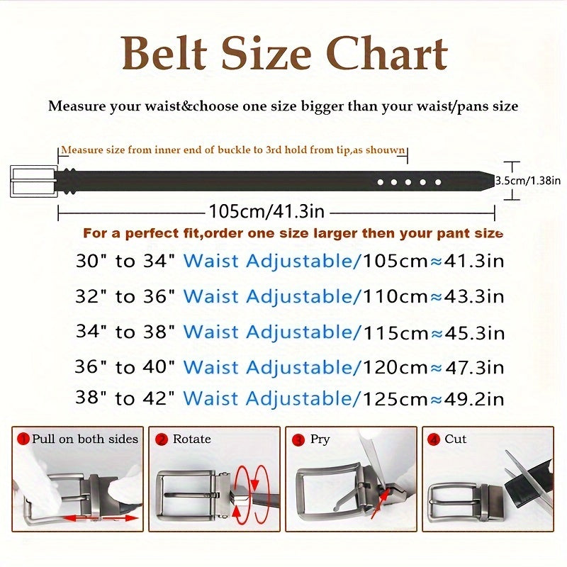 This VERSDO men's reversible leather belt is perfect for casual, golf, and other occasions. The square buckle adds a stylish touch. You can adjust the waist size from 76 to 42 for a comfortable fit.