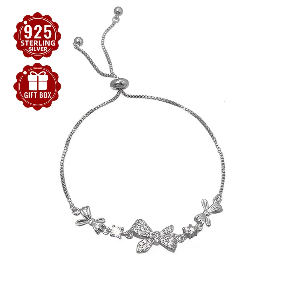 VIGG 925 Silver Butterfly Bracelet w/ zirconia Accents Bolo Bracelet for Women