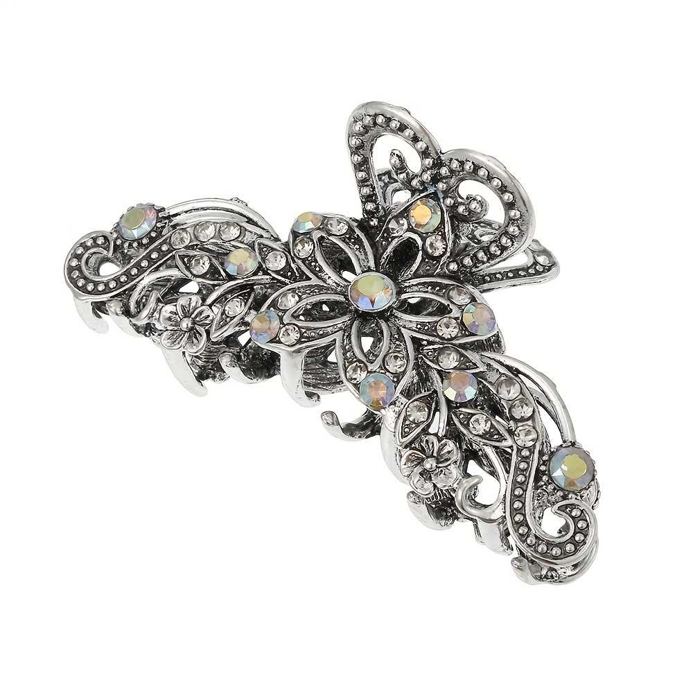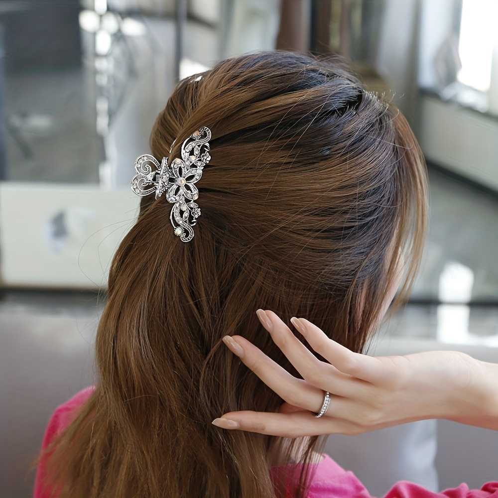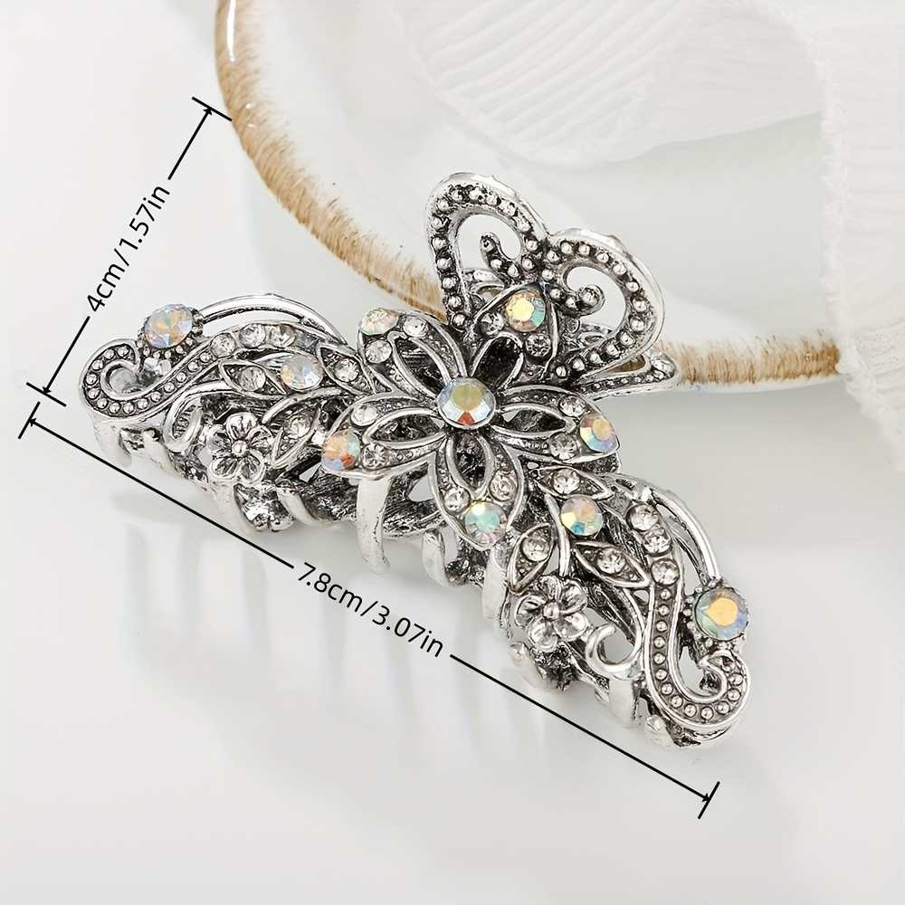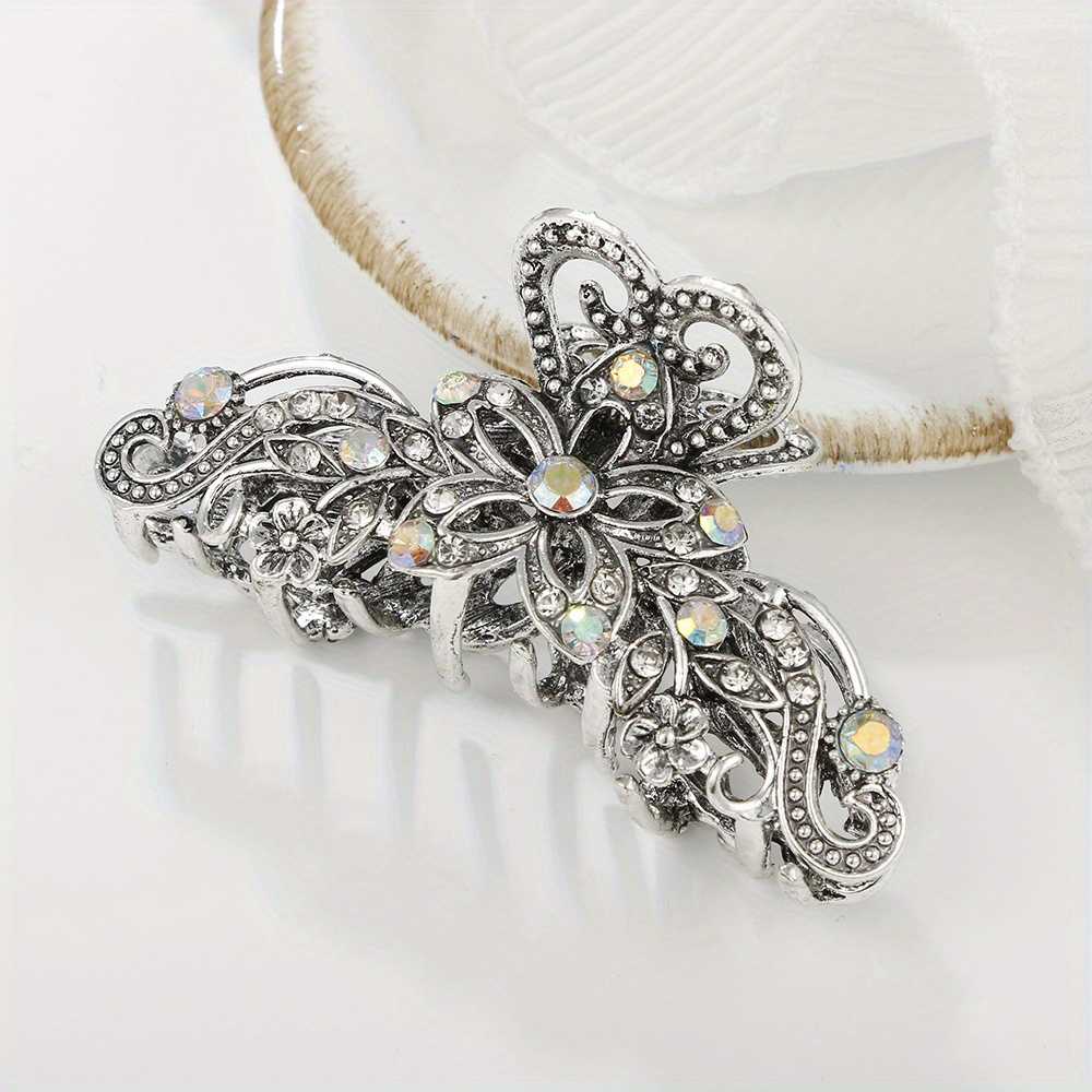 Pince à griffes argentée vintage avec strass, design antidérapant pour femme