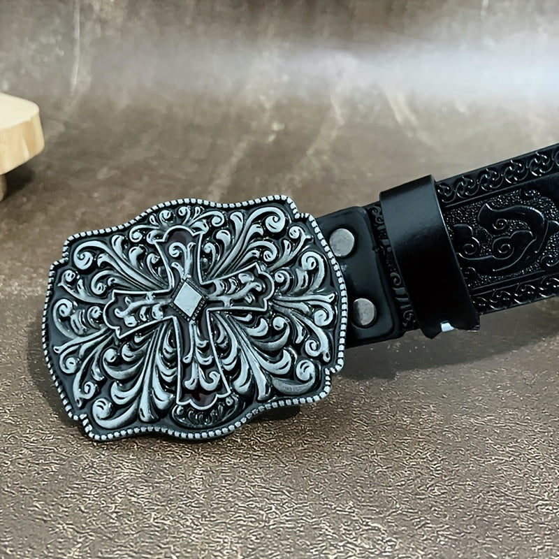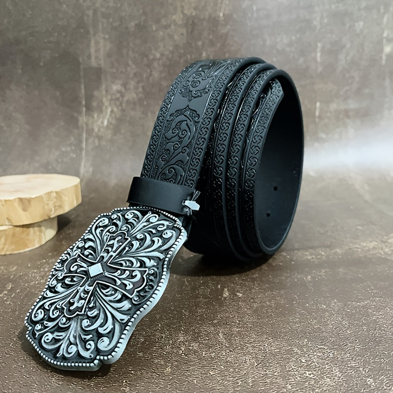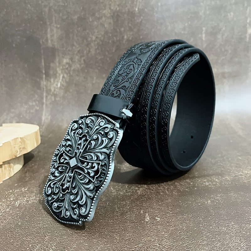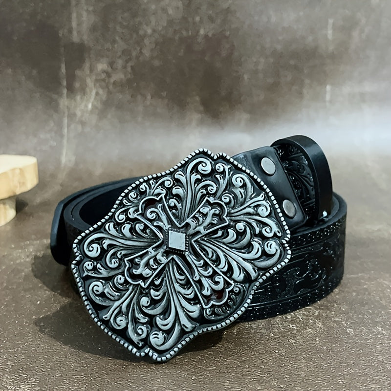 Add a touch of cowboy flair to your outfit with this faux leather belt featuring a skull buckle. Perfect for Easter holidays!