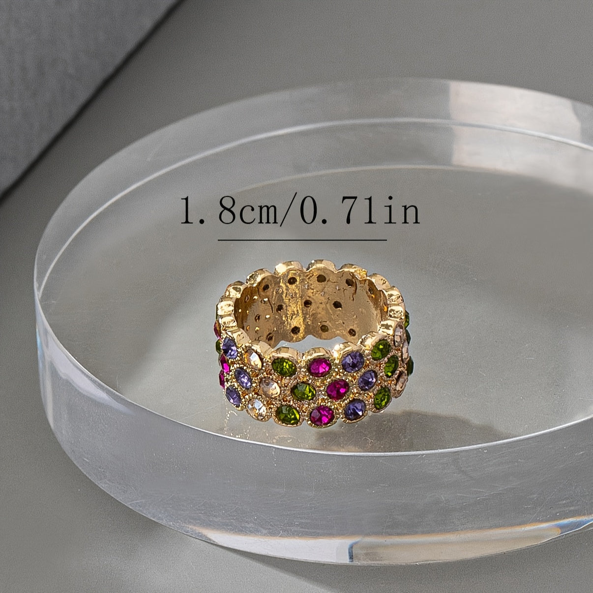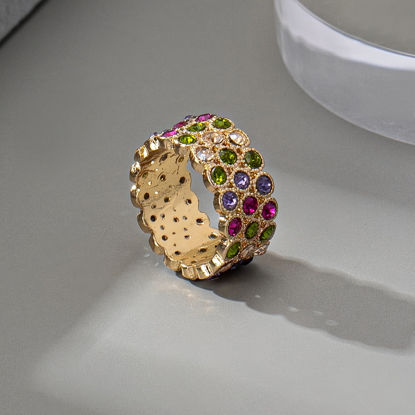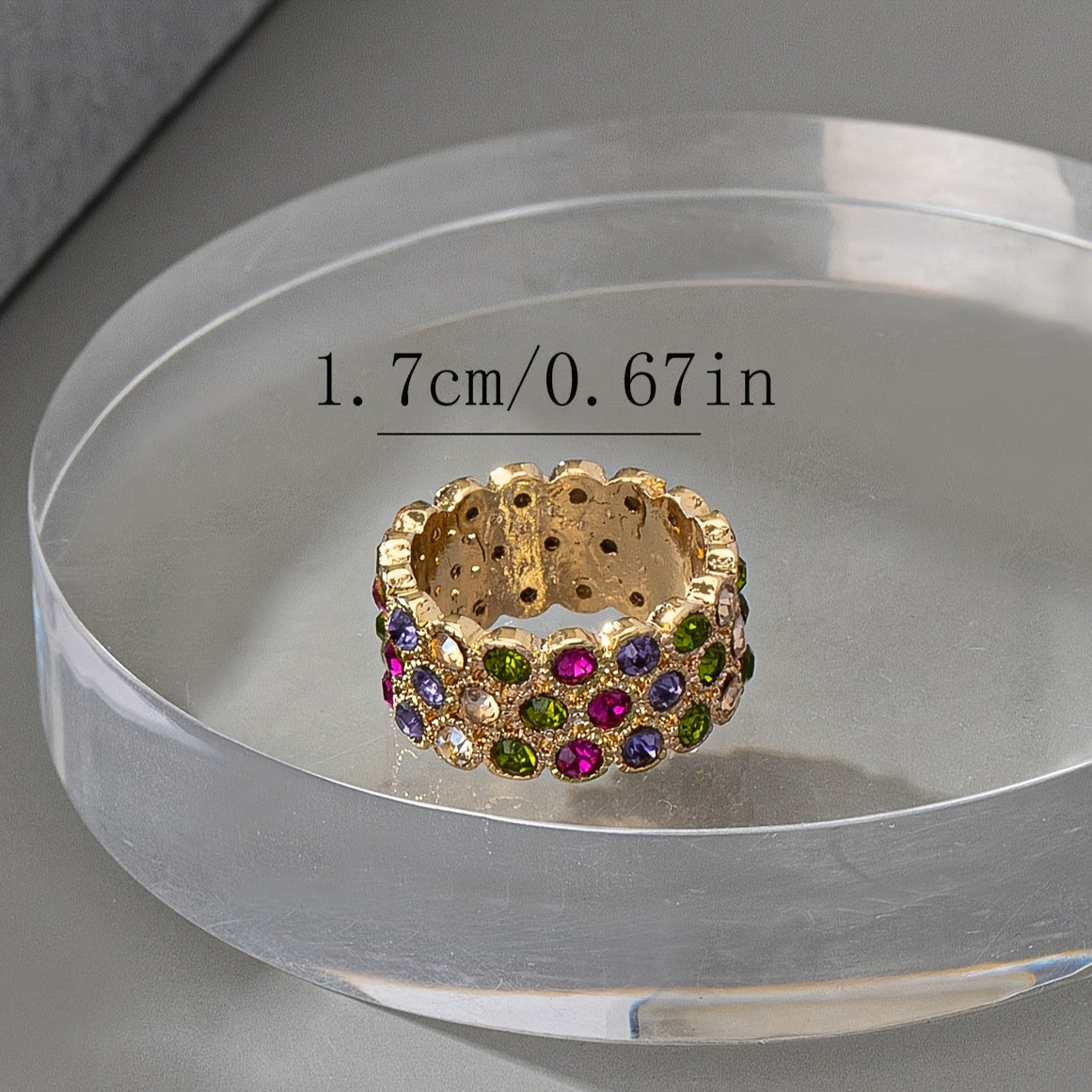 - Wide band ring with rhinestones for added sparkle