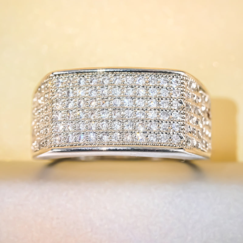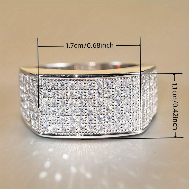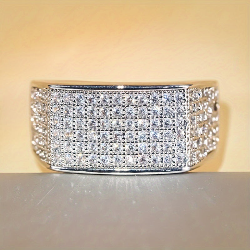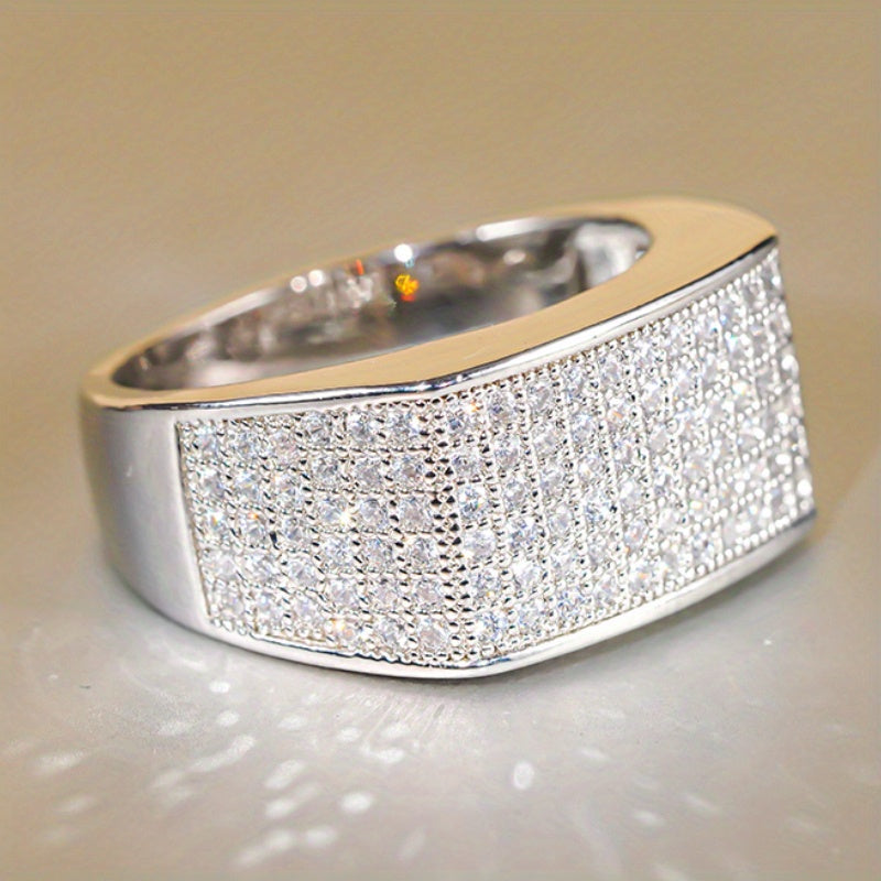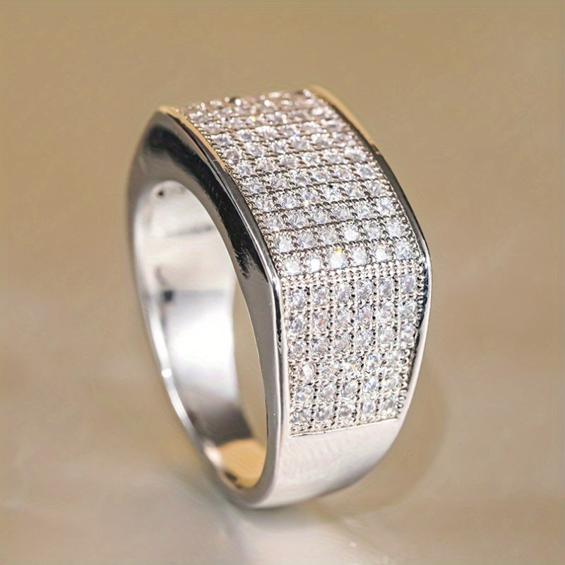 This minimalist wide face ring is adorned with synthetic zirconia stones and features a golden plated copper band. It's perfect for parties, music festivals, and everyday casual wear.