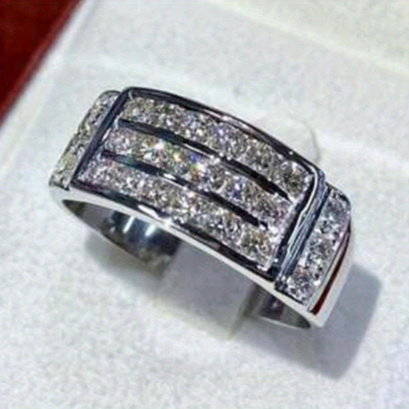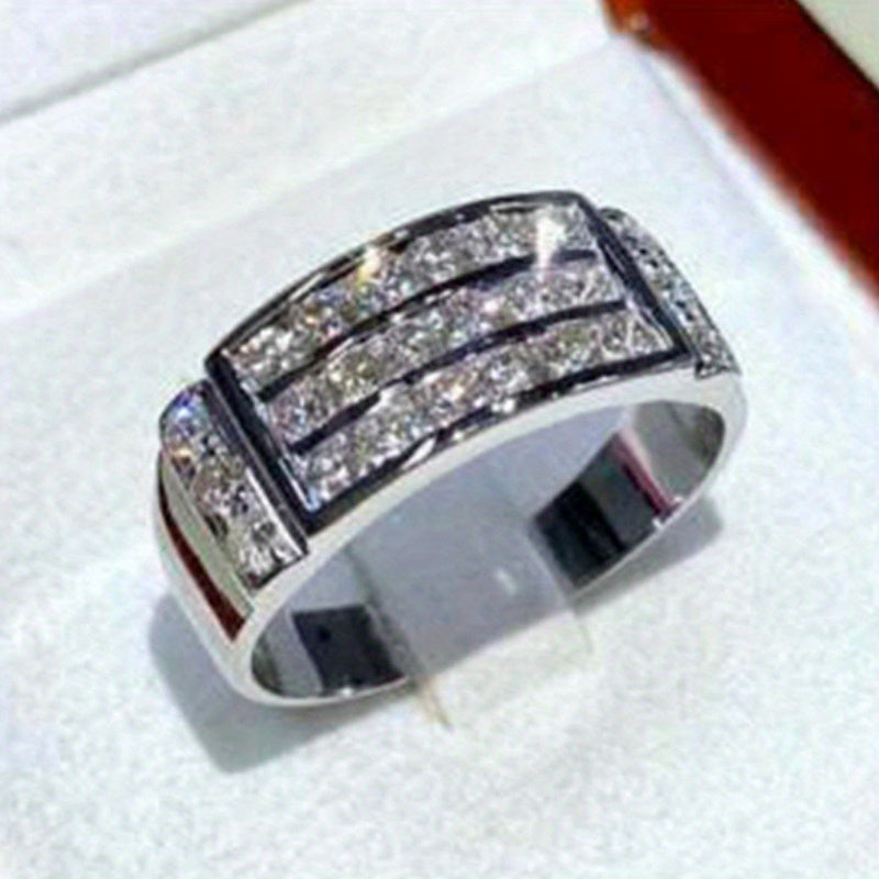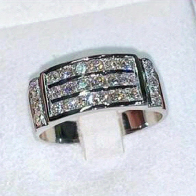 • Wide face ring with 3 rows of sparkling cubic zirconia
