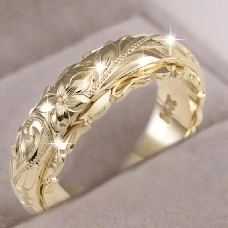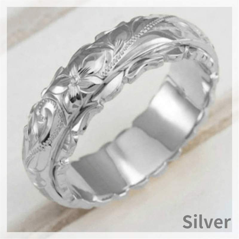 This wide ring features intricate carving and a dainty flower design, perfect for daily outfits or special occasions. A sweet anniversary or birthday gift for your girl.