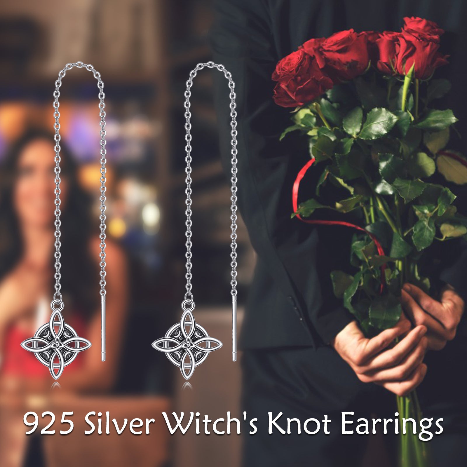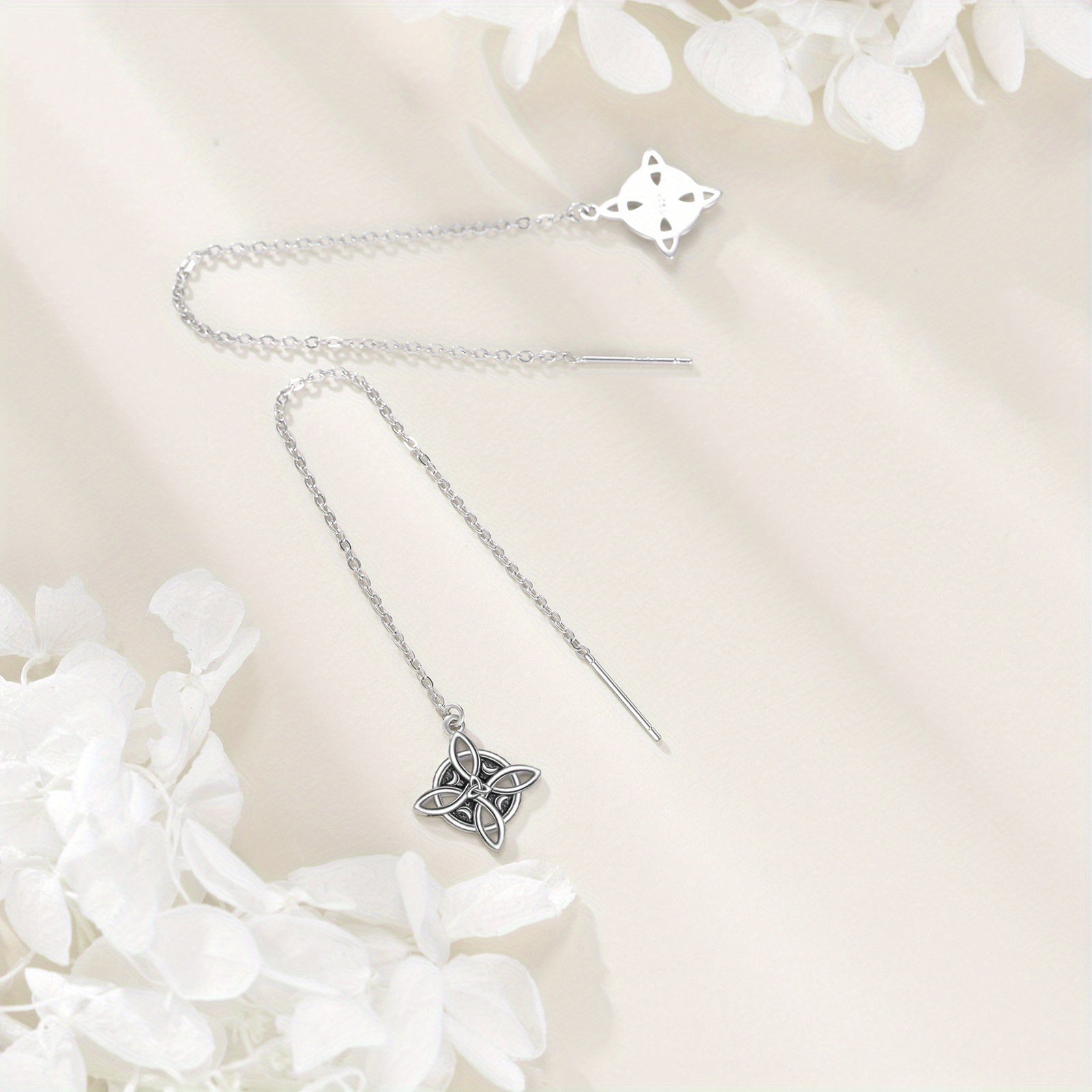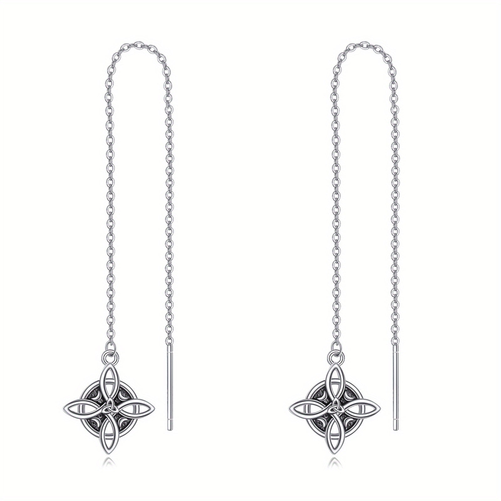 Add a touch of mystique to your look with these beautiful 925 sterling silver threader earrings featuring a Celtic witch's knot design. These long earrings are perfect for everyday wear or special occasions.