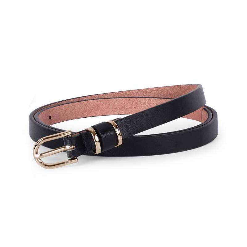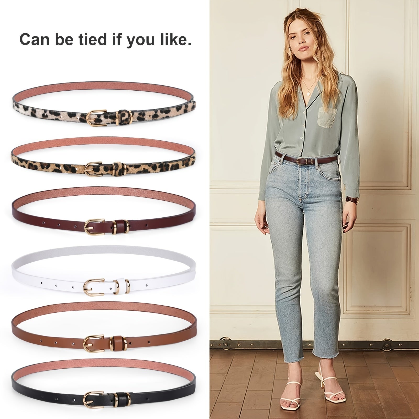 Elevate your outfit with this stylish faux leather belt that is perfect for jeans. Featuring a slim design and a solid metal buckle, this belt adds a touch of elegance to any look.