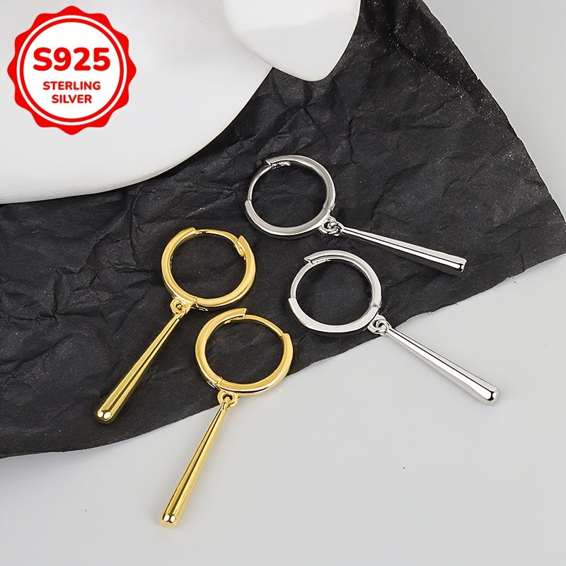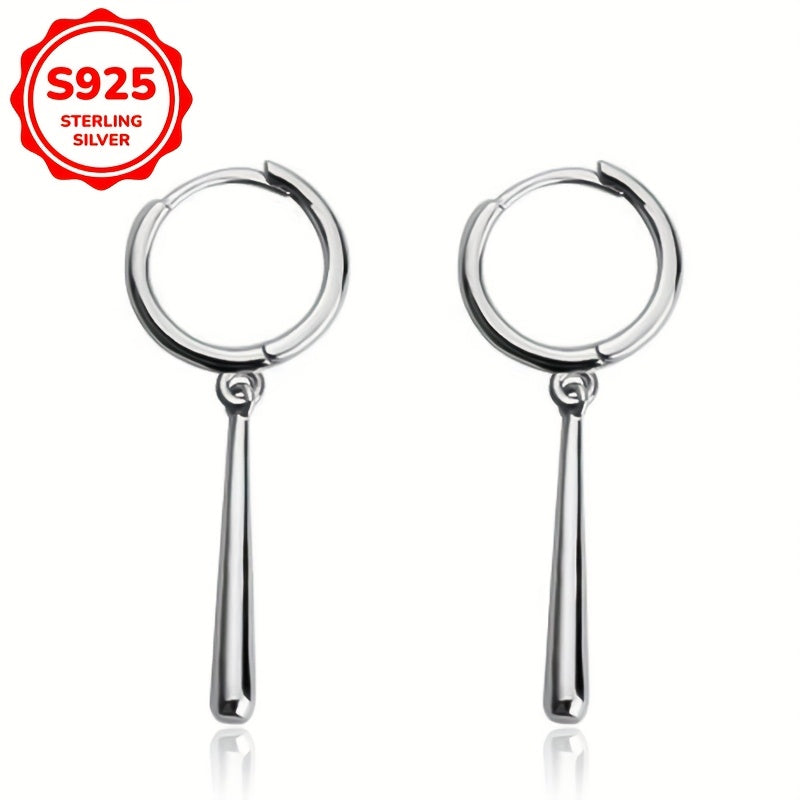 Elegant and versatile pair of hoop dangling water drop earrings made of 925 silver. Suitable for daily wear.