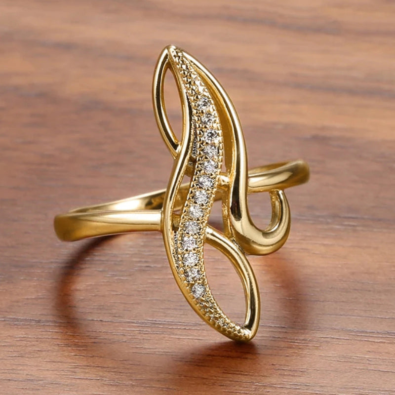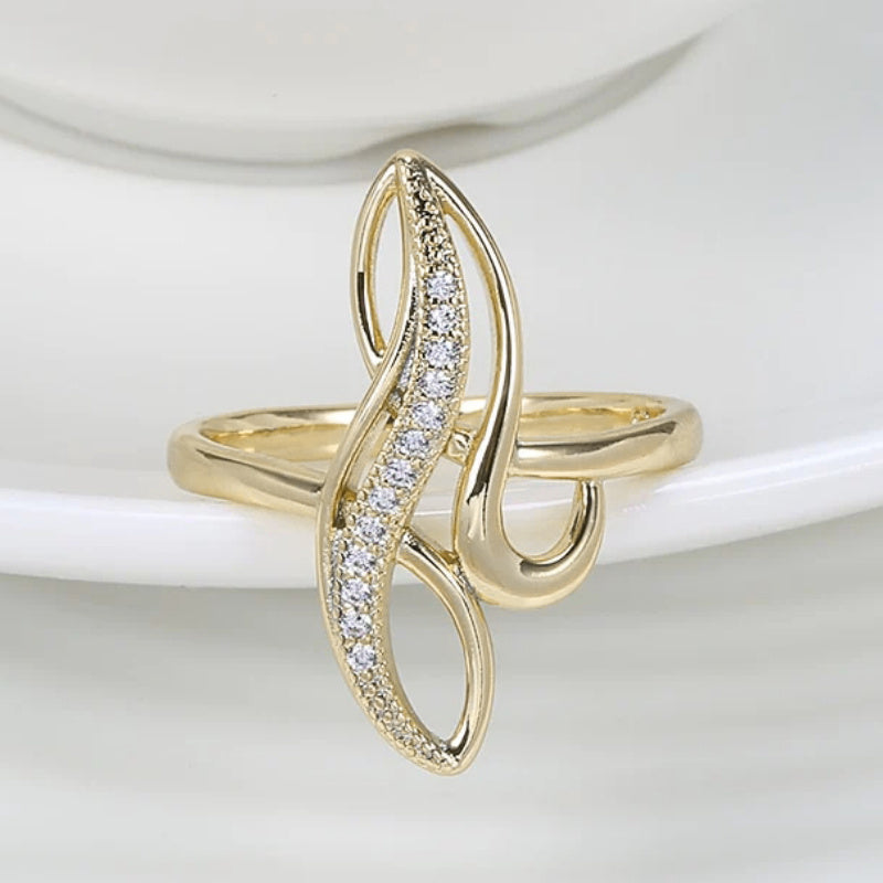 Women's Geometric Intertwined Lines Zirconia Statement Ring KC Golden Plated