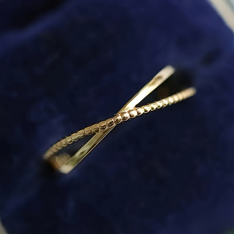 This stylish ring features a golden tone cross intersecting with a textured copper band, making it ideal for daily outfits and casual wear.