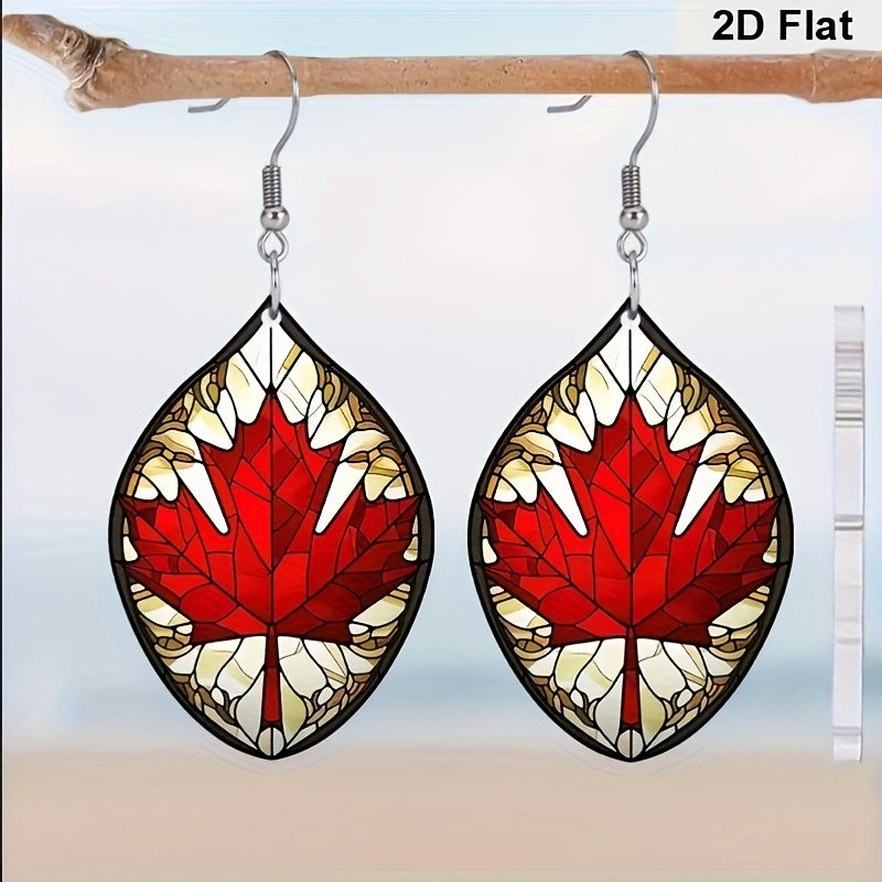 Make a statement with these festive Halloween maple leaf dangle earrings. The 2D acrylic design adds a unique touch to your outfit.