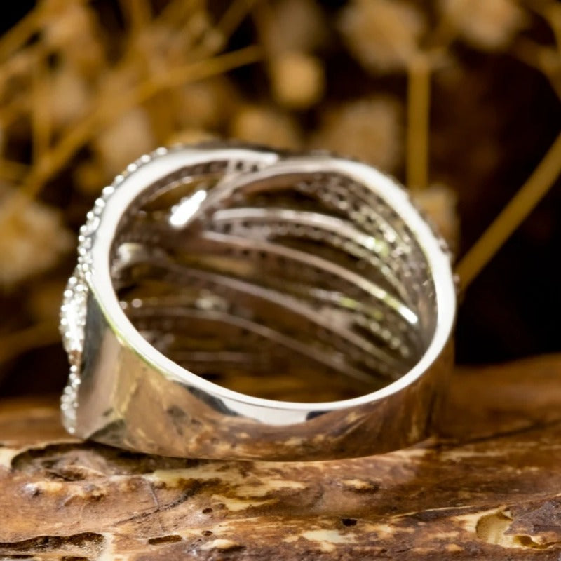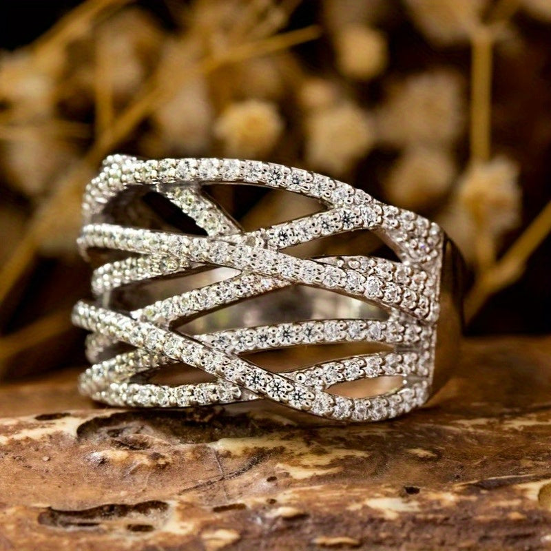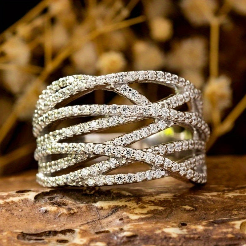 This classic interwoven ring is perfect for daily wear or parties. Made from copper with plating, it features a stylish design and is adorned with an April birthstone.