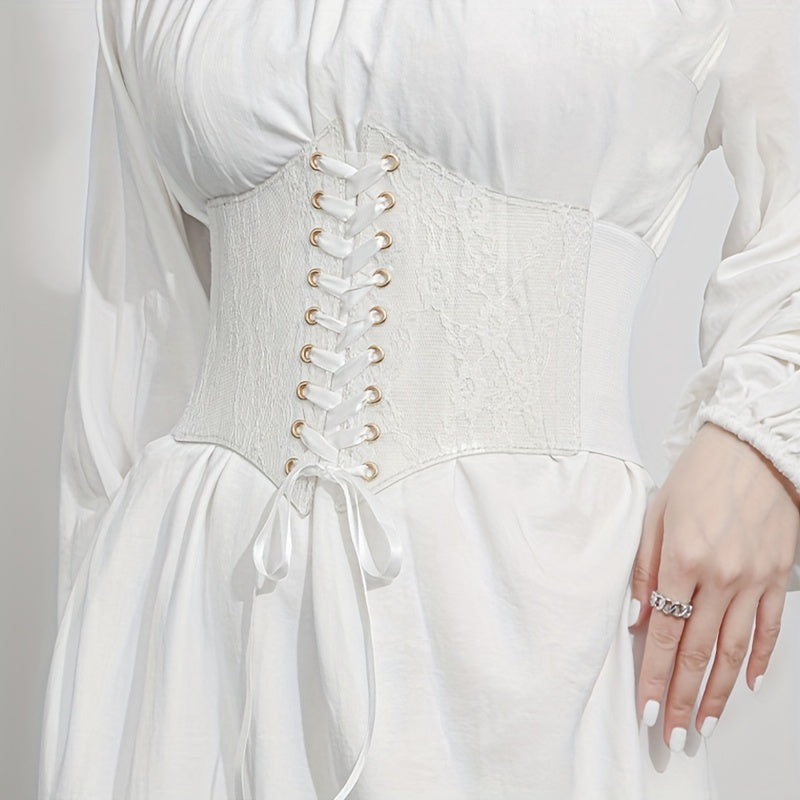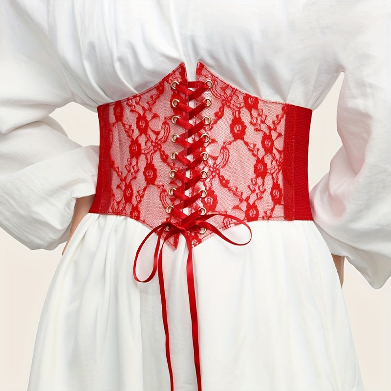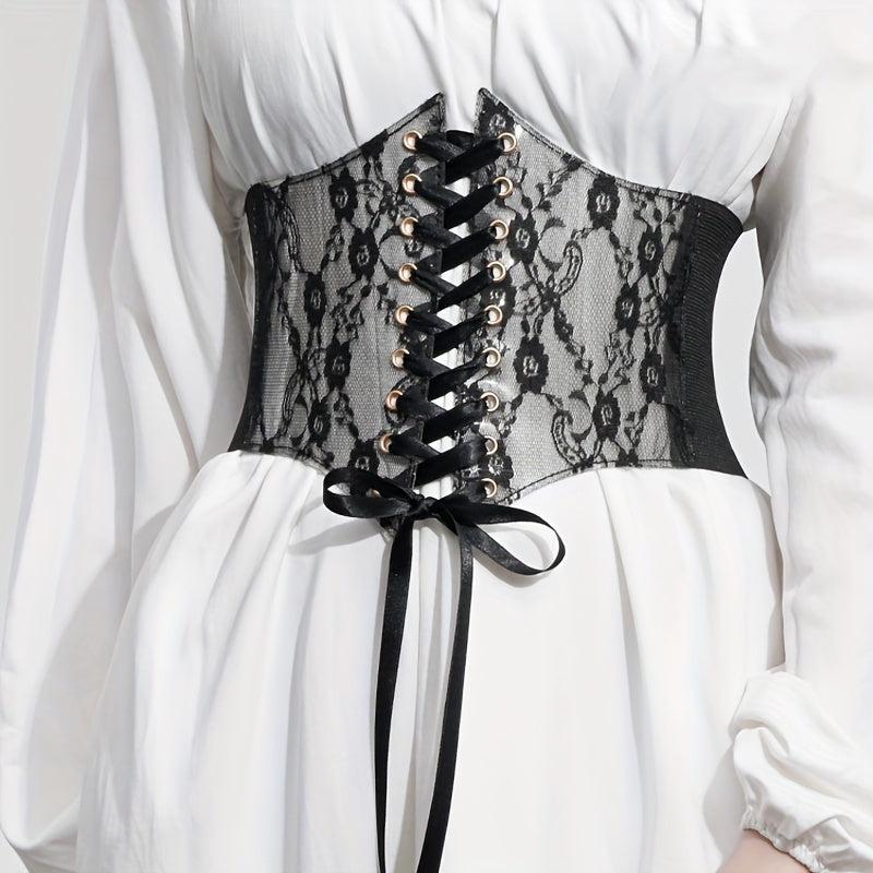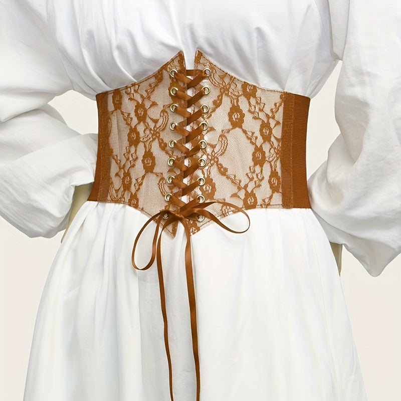 Add a touch of elegance to your outfits with this lace corset belt featuring floral design and adjustable laces. Perfect for dresses, tops, and casual wear.