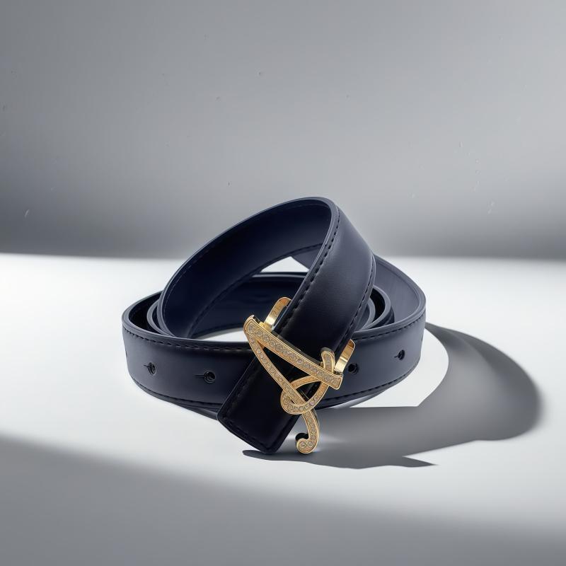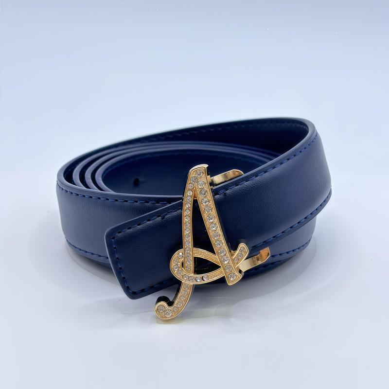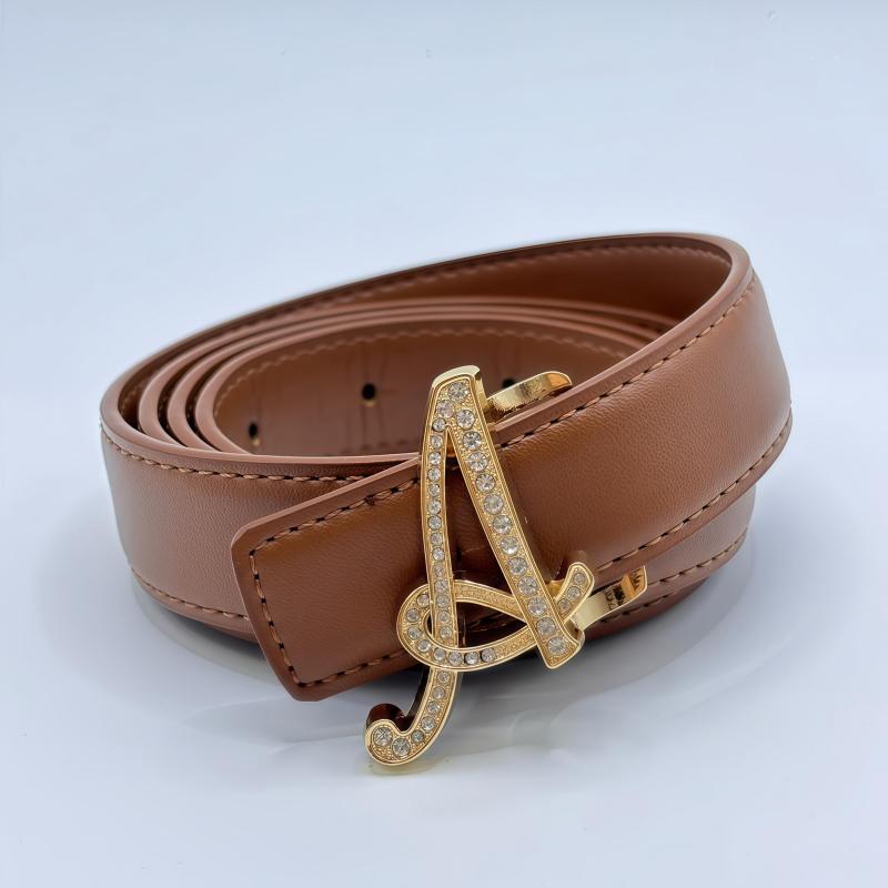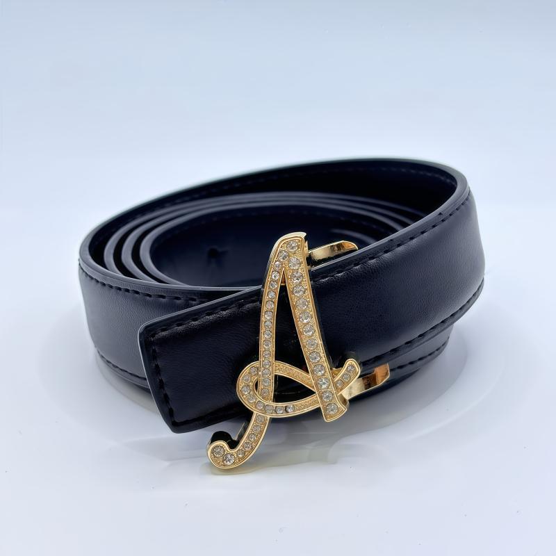 Elevate your style with this chic leather belt featuring a stunning rhinestone 'A' buckle. Perfect for jeans, dresses, weddings, parties, and any casual to formal occasions.