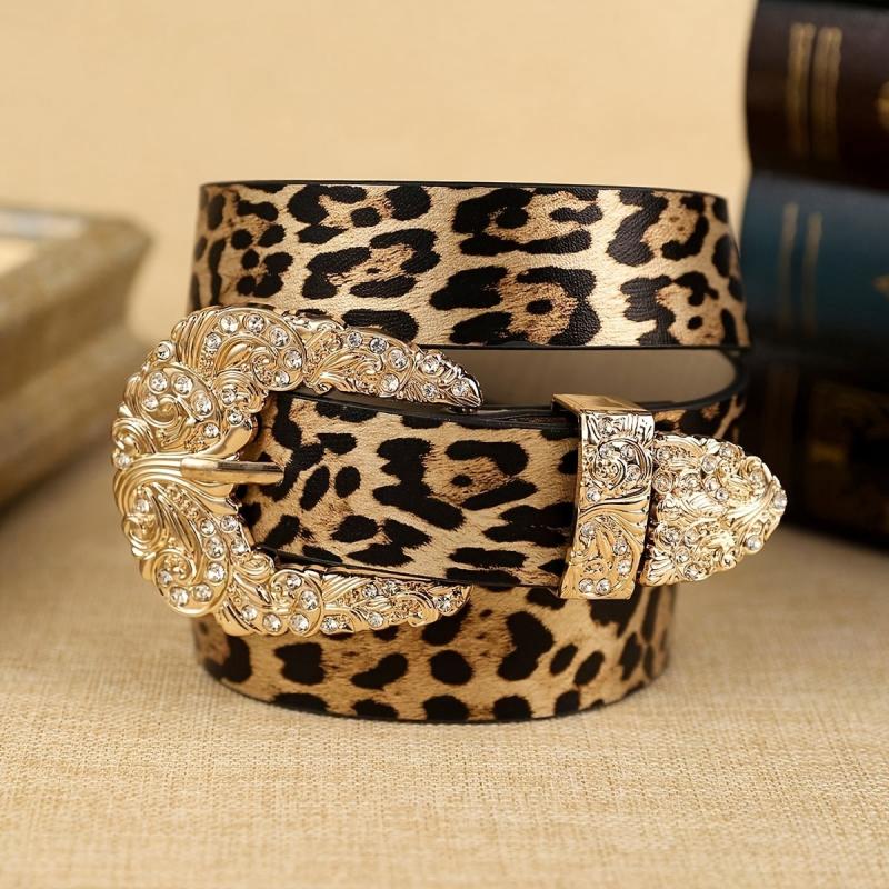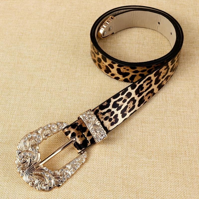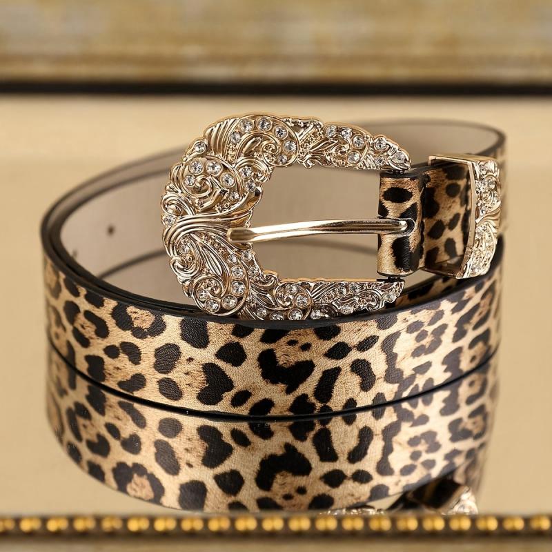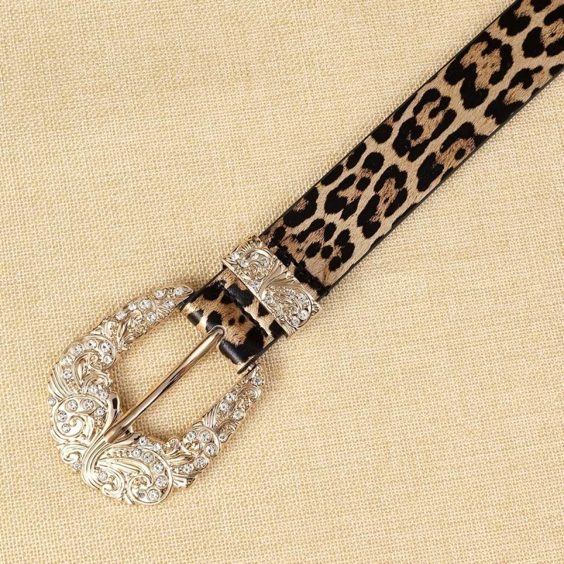 Add a touch of vintage punk flair to your outfit with this versatile belt featuring a leopard print rhinestone design and metallic buckle. Perfect for casual wear, weddings, parties, and more.
