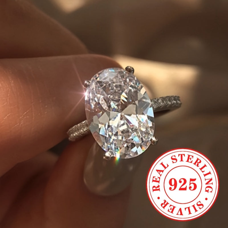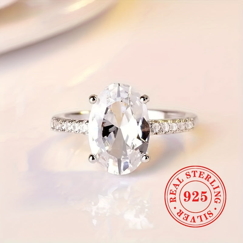 This stunning S925 sterling silver ring features an oval cut cubic zirconia stone held in a 4-prong setting. Perfect for a proposal or as a wedding ring gift.