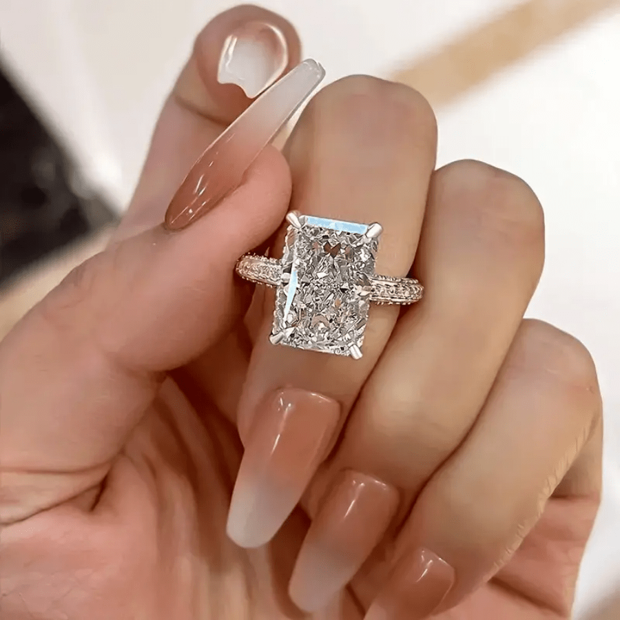 This dual-sided women's ring features a square-cut center stone with round brilliant accents, made of durable synthetic zirconia. Perfect for engagement, wedding, party, or as a gift.