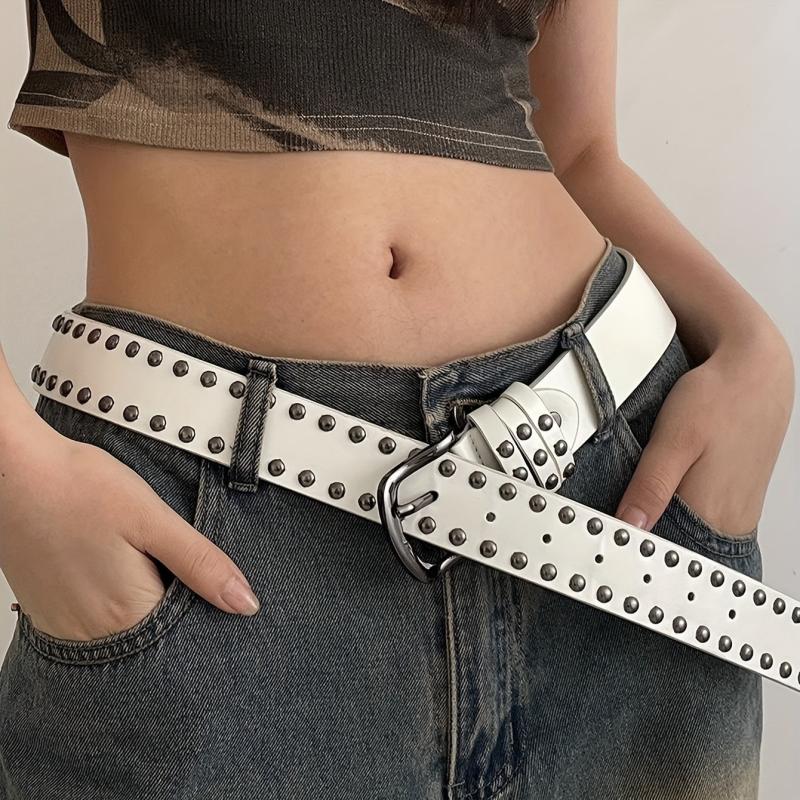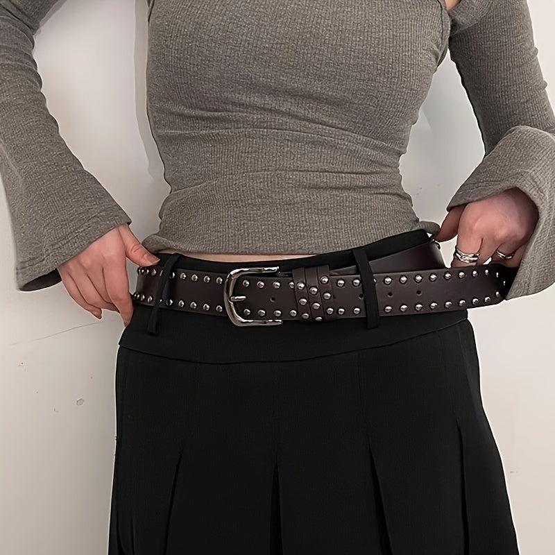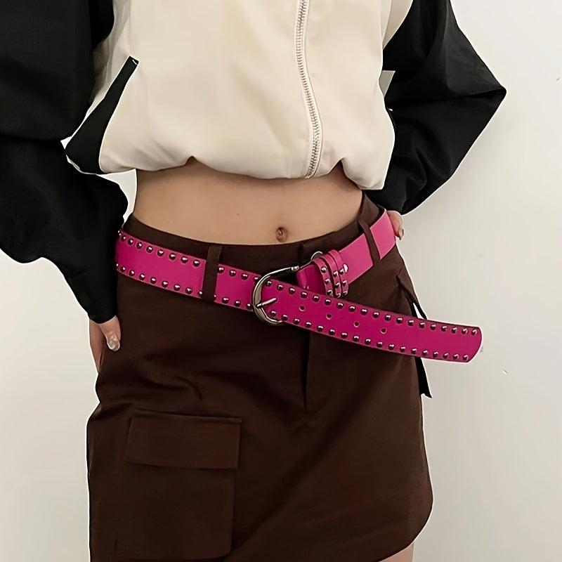 Add a touch of edgy sweetness to your outfit with this rivet belt. Perfect for daily commute, parties, festive nights out, and weekends. Crafted from non-textile material, this belt is a stylish addition to any look.