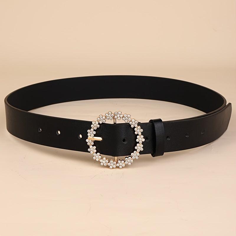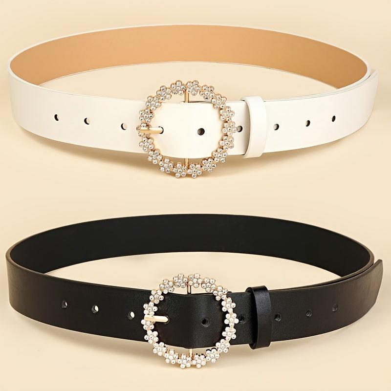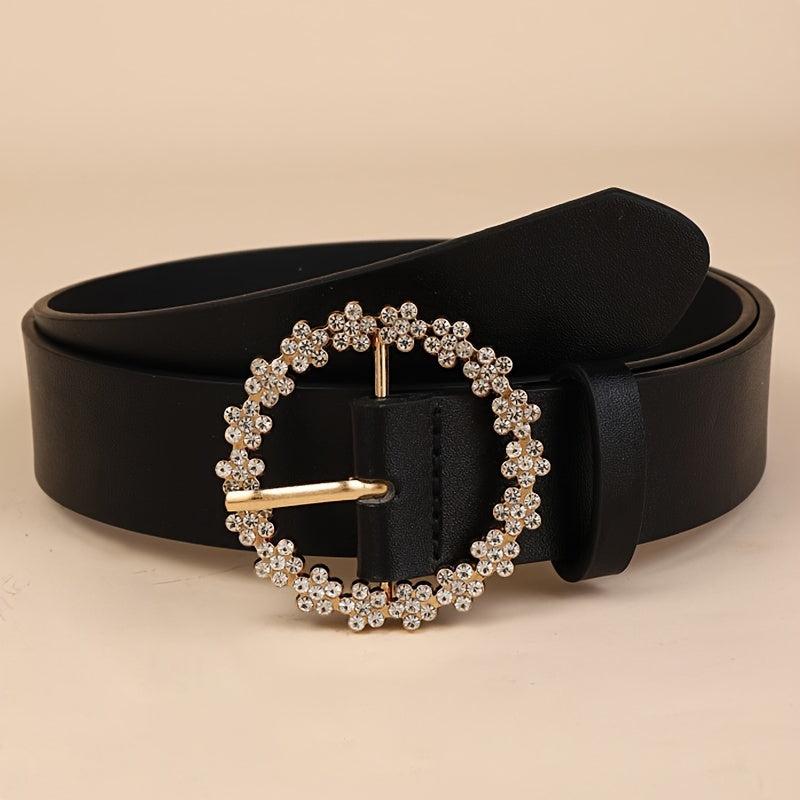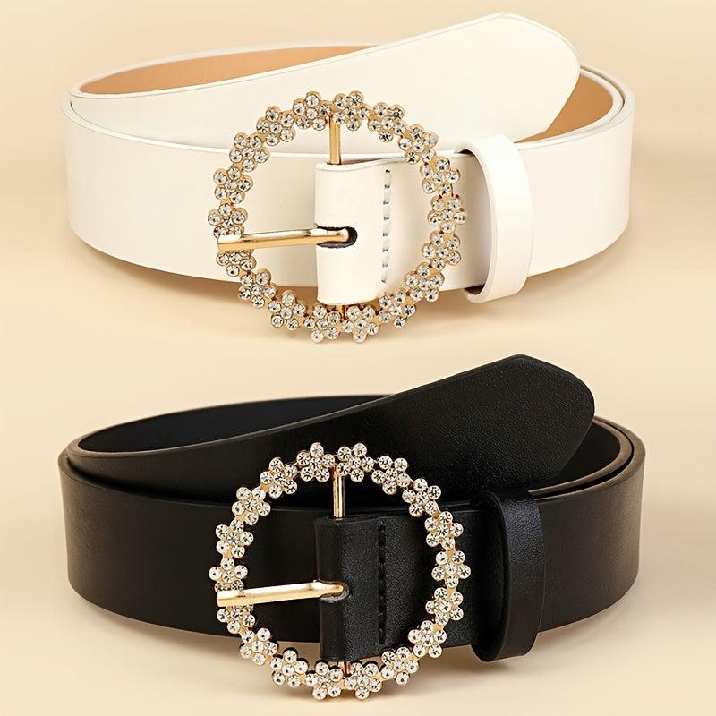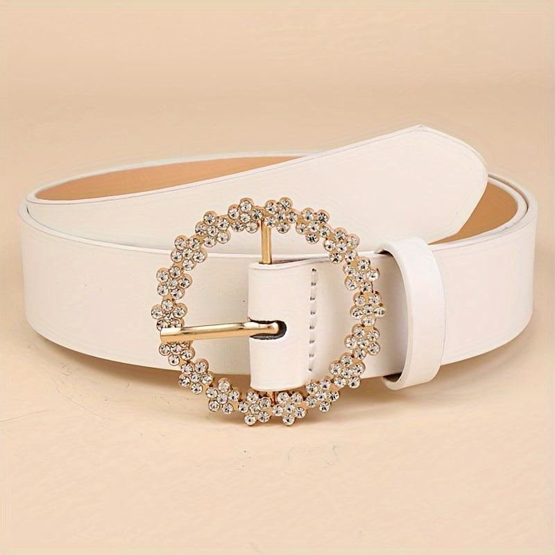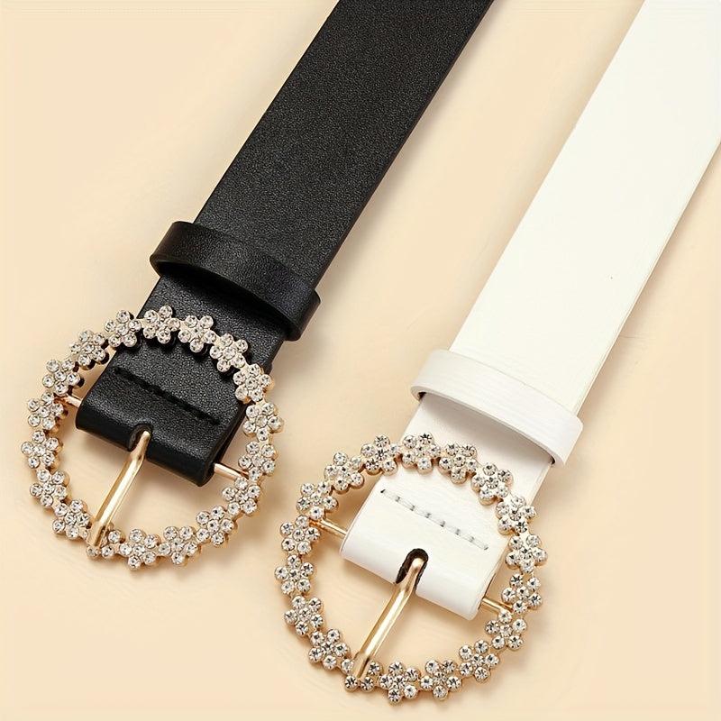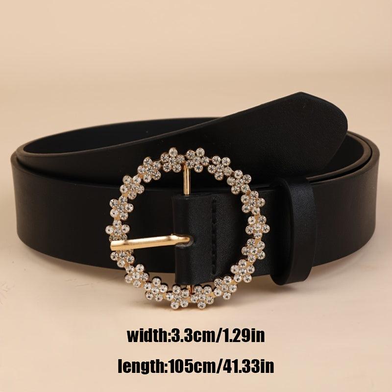 This women's belt features a round buckle and is ideal for both casual and business settings. It is lightweight and non-textile, making it suitable for dresses, coats, sweaters, jeans, daily commute, and mature occasions.