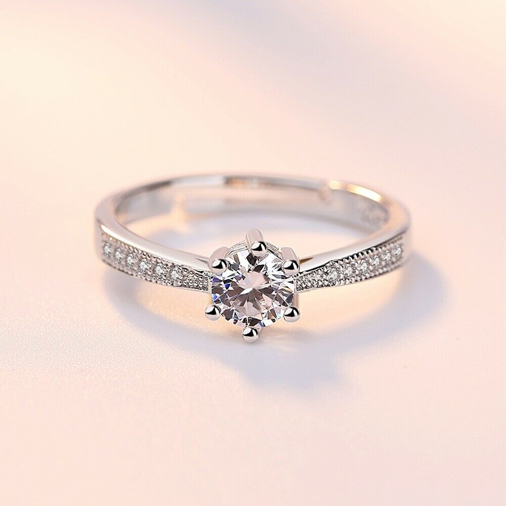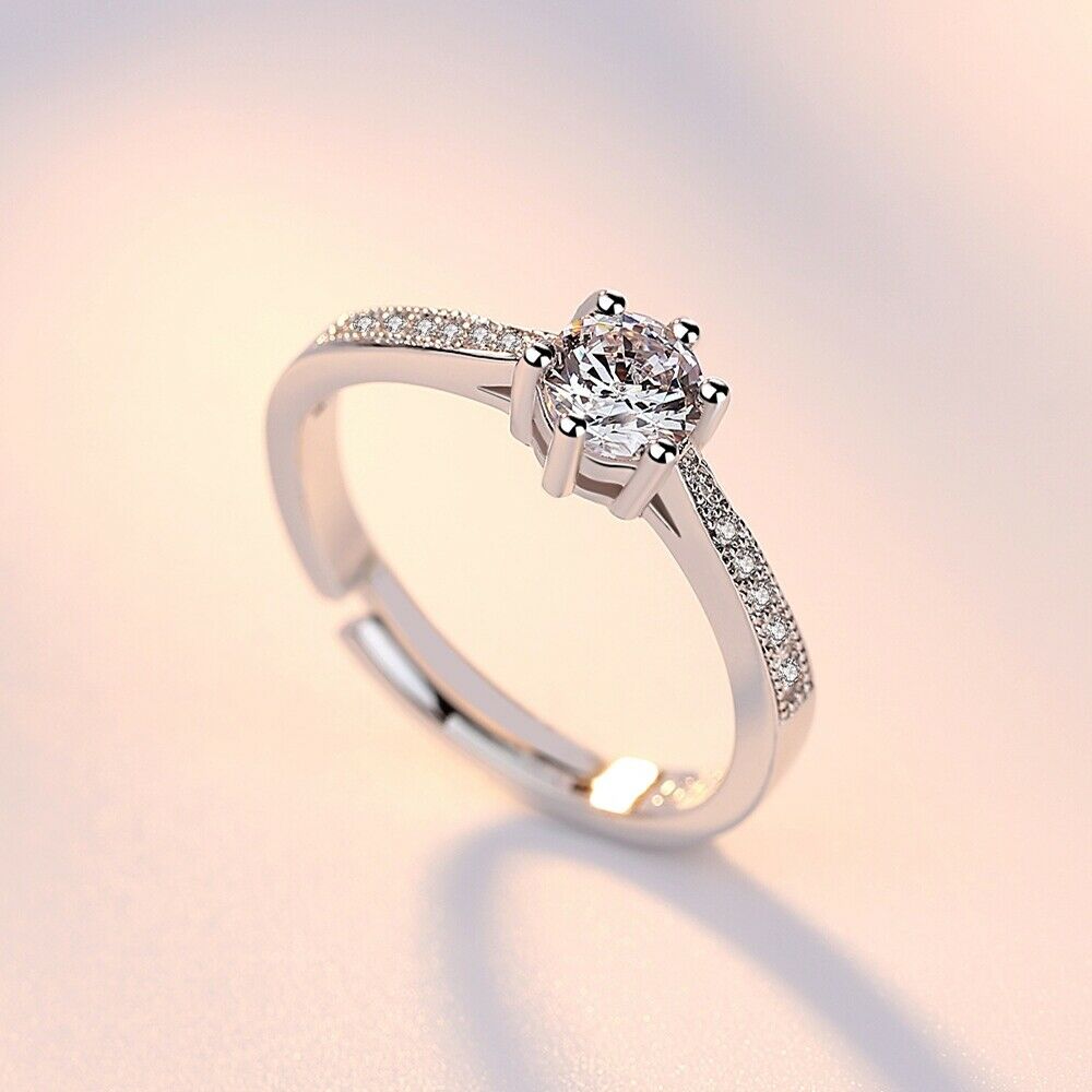 Bague ajustable pour femme en plaqué argent avec pavé de zircones taillées en couronne